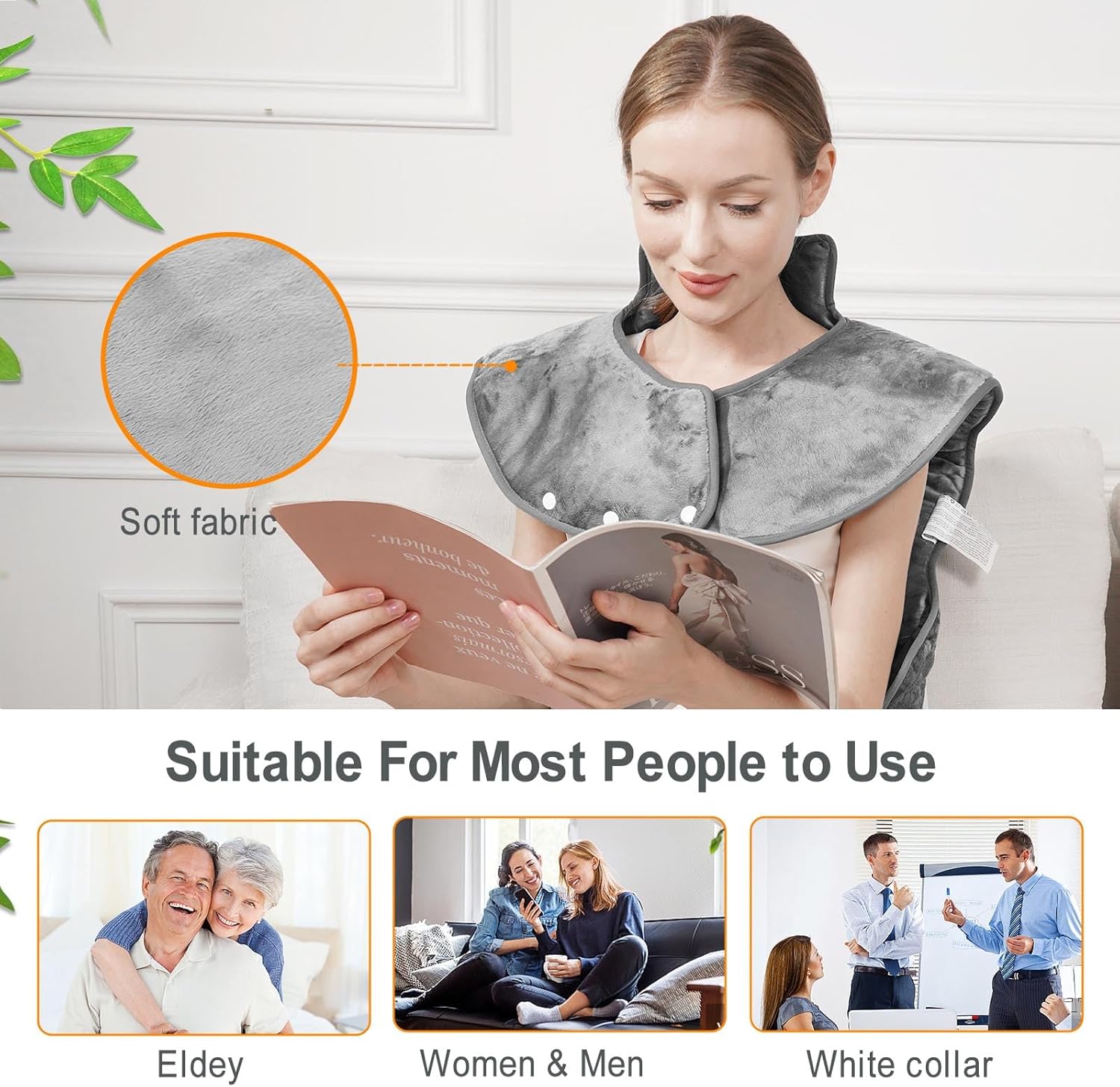 6 Warmth Settings and 4 Timer: The neck and shoudler heating pad designed with 6 temperature settings from 104℉ to 140℉, 4 timer from 30mins to 120mins and 2H auto shut-off, you’ll be able to select the proper one to satisfy your wants