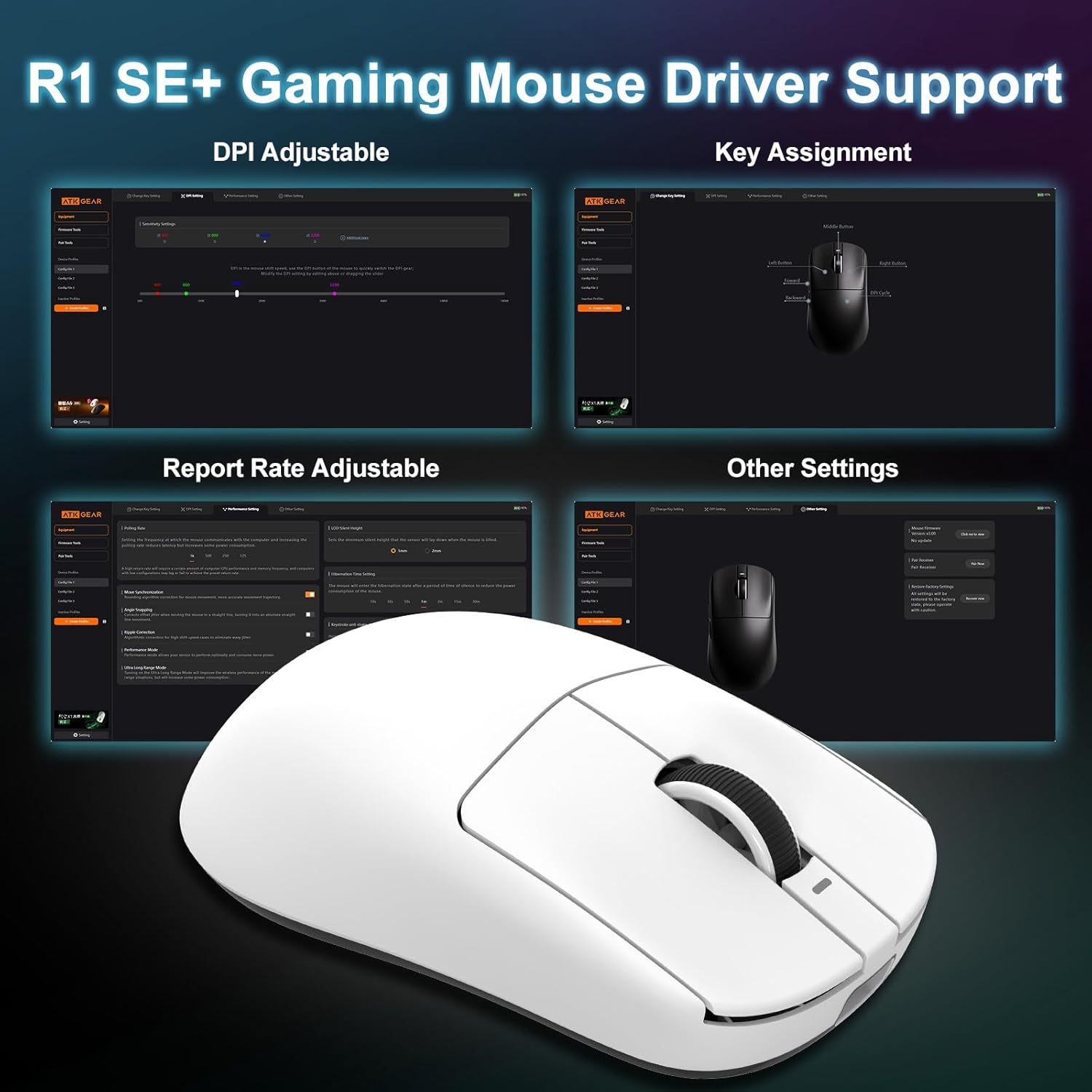 Internet-driven: Within the web-driven interface, you possibly can simply make complete customized settings for the mouse, comparable to adjusting the DPI, polling fee,customizing the button capabilities, and so on. You may flexibly alter the mouse parameters at any time in accordance with totally different recreation varieties and private operation habits, which is handy and environment friendly