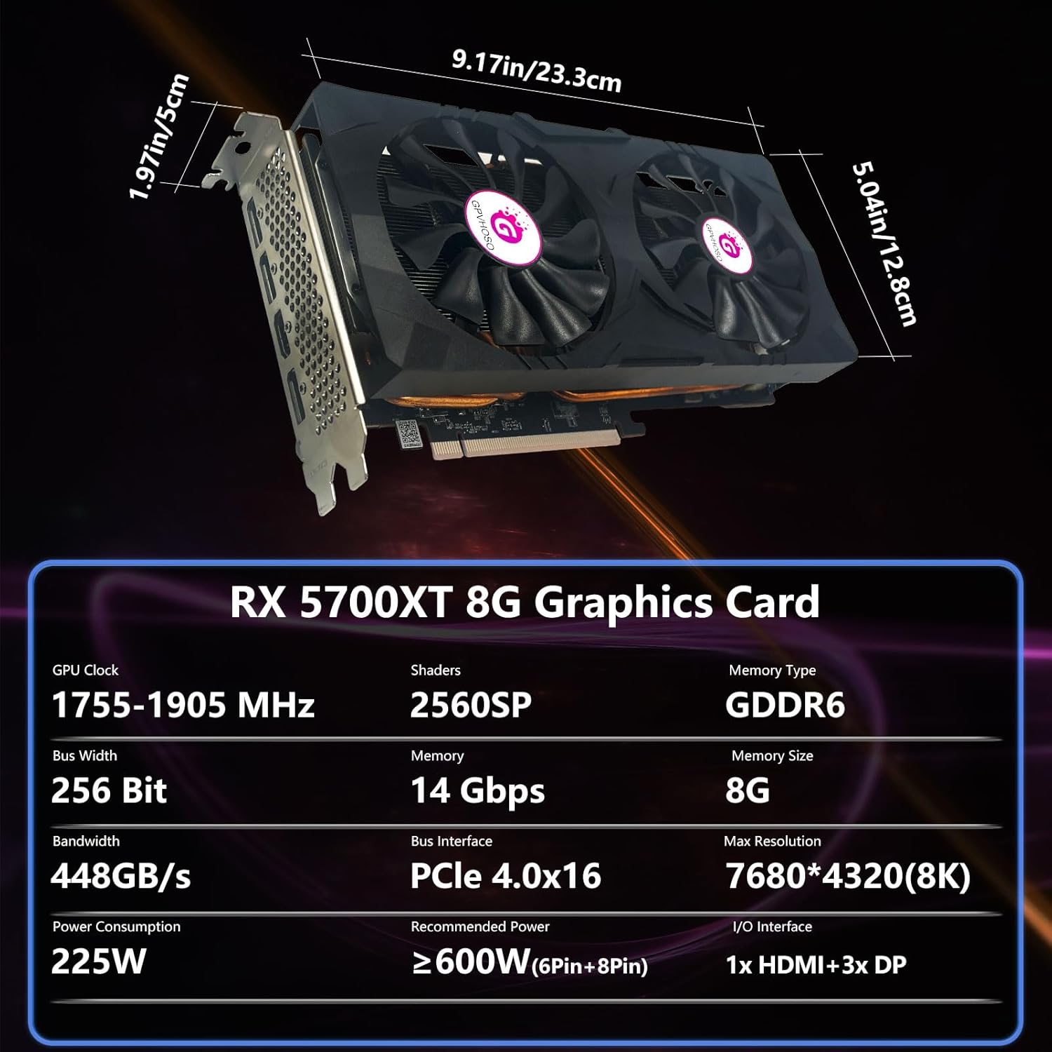 Enhanced Visuals: Expertise gorgeous graphics with assist for DirectX 12 and asynchronous compute applied sciences. The RX 5700 XT supplies clean body charges and vibrant visuals, making it supreme for avid gamers and content material creators searching for high-quality renderings.