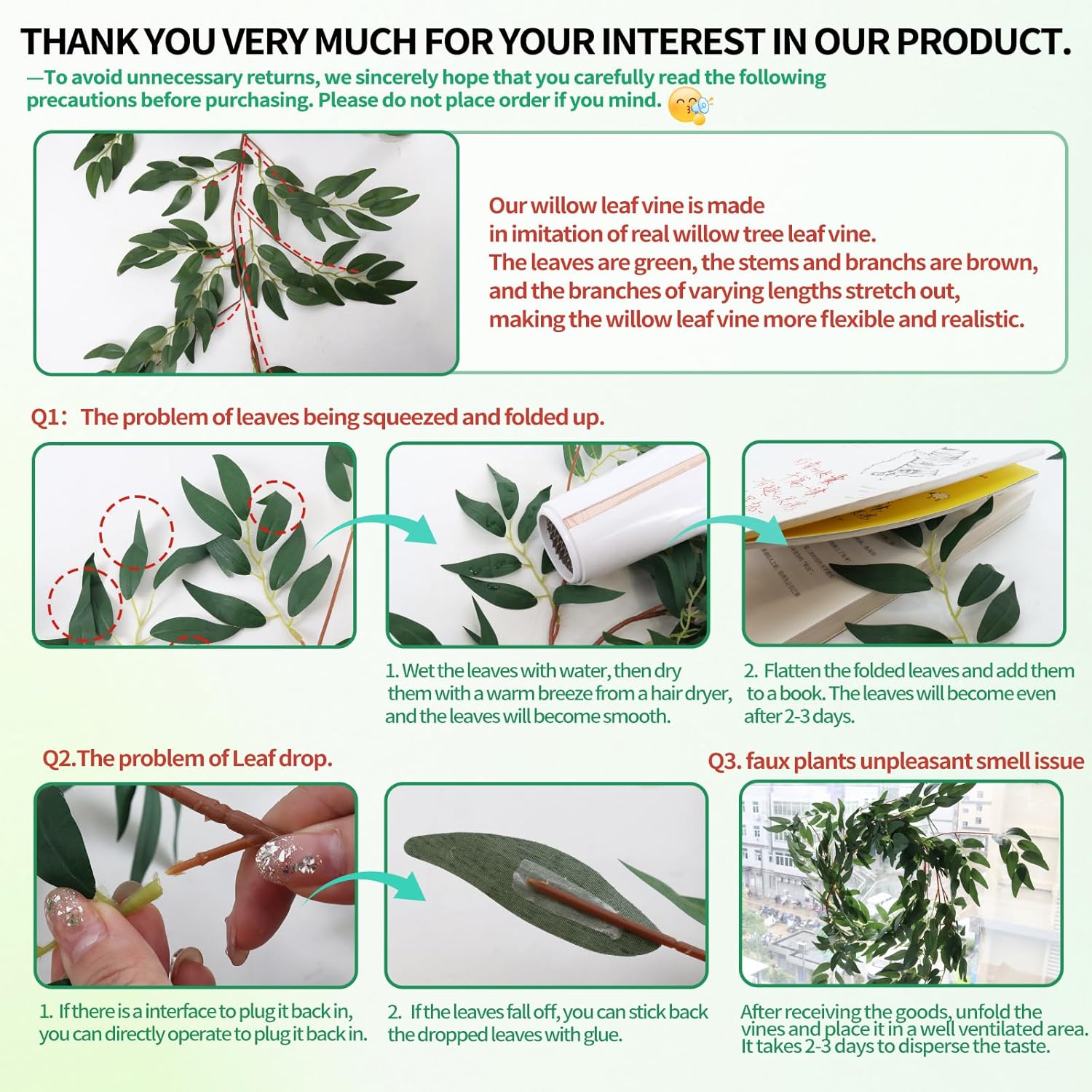 NOTE:Synthetic vegetation are inevitable with scent, you’ll be able to put it in a ventilated place for 1-2 days.