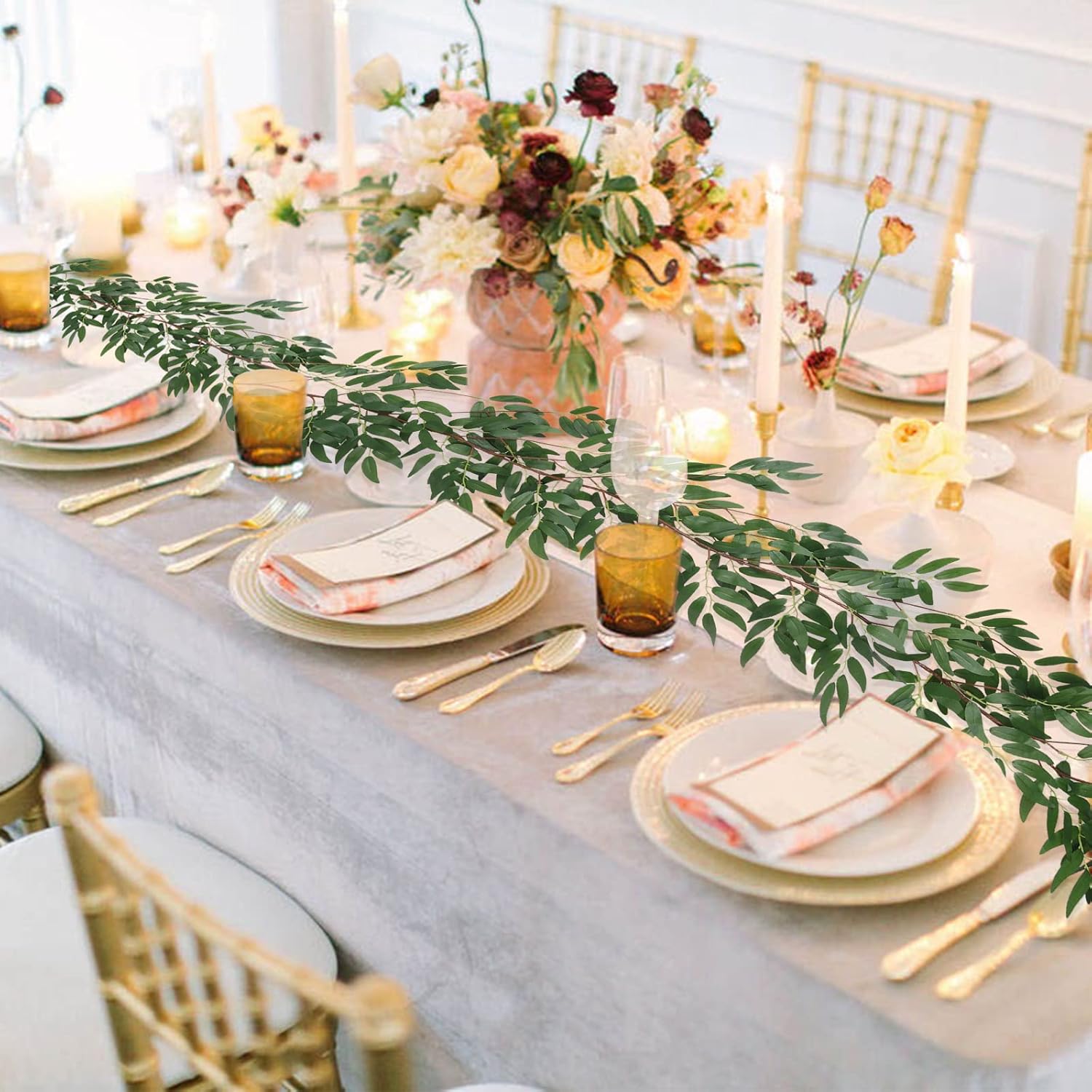 ROMANCE WEDDING DECORATION Artificial Willow Leaves Vines Twigs Fake Silk Hanging Willow Plant Greenery GarlandArtificial Willow Leaves Vines Twigs Fake Silk Hanging Willow Plant Greenery Garland