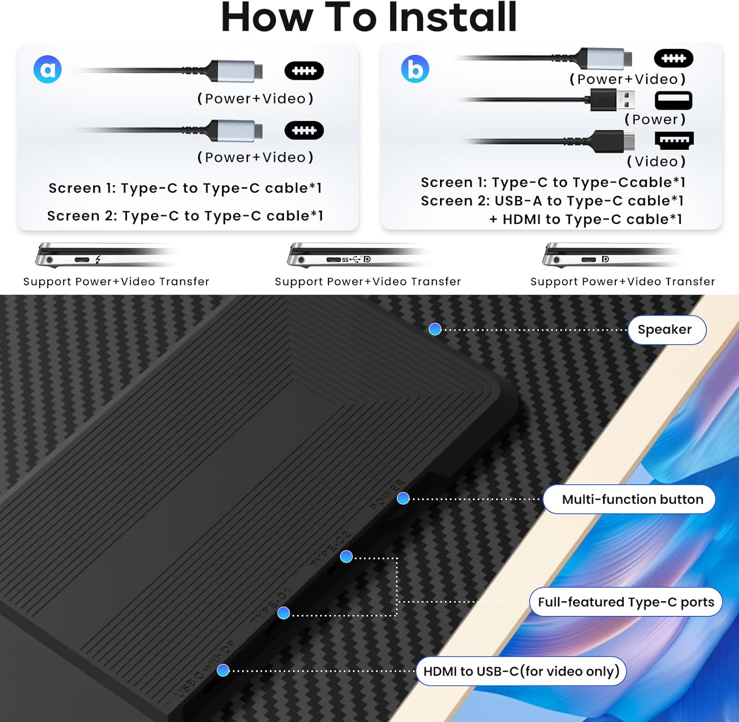 【Plug and Play, No Driver Required】It is a triple laptop computer display extender for 13″-17.3″ laptops, whether or not you select a USB-C, USB-A or HDMI connection, merely plug within the laptop computer display extender and begin your each day use with out drivers. (Please be aware: When utilizing the HDMI cable, join an extra USB-A to USB-C cable on the identical display extender for energy provide)