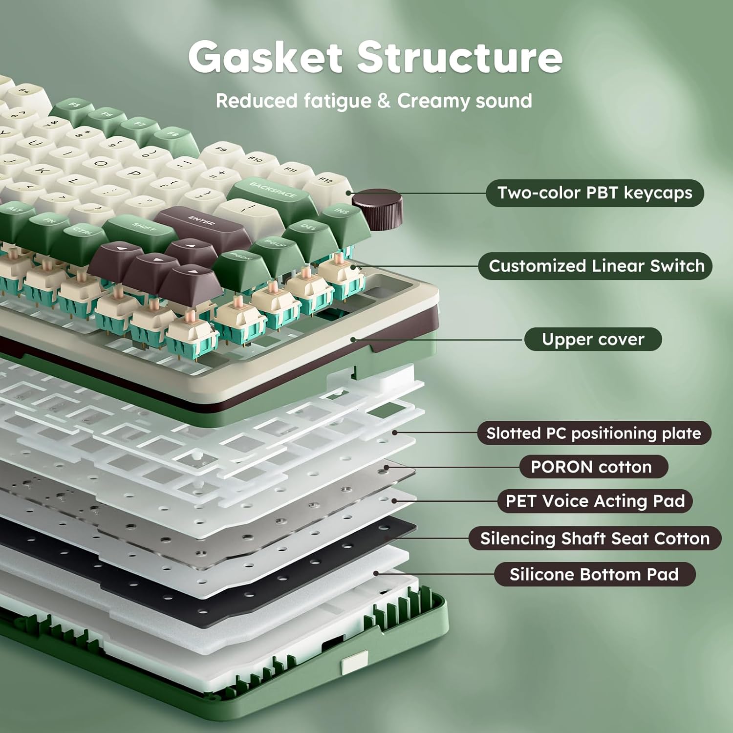 【Tri-mode Connection & 4000 mAh Battery】This 75% keyboard helps BT (3.0+5.0), 2.4GHz wi-fi, and USB wired connectivity, which will be simply and seamlessly related and switched with gadgets as much as 10 meters away through the buttons on the left aspect of the keyboard for environment friendly multitasking. As well as, this rechargeable keyboard is provided with a high-capacity 4,000 mAh battery, which lets you shrug off battery life anxiousness