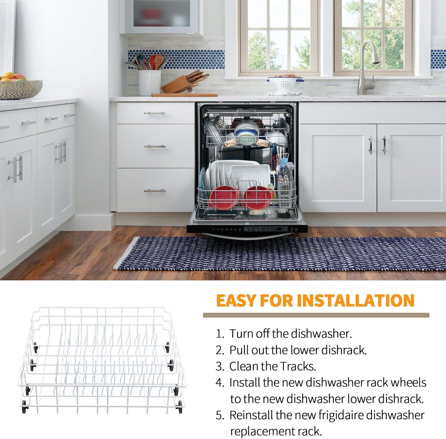 【INSTALLATION EASY】1.Flip off the frigidaire dishwasher. 2.Pull out thefrigidaire dishwasher decrease dishrack. 3.Clear the Tracks. 4.Set up the brand new frigidaire dishwasher rack wheels to the brand new frigidaire dishwasher decrease dishrack. 5. Reinstall the brand new frigidaire dishwasher rack alternative.