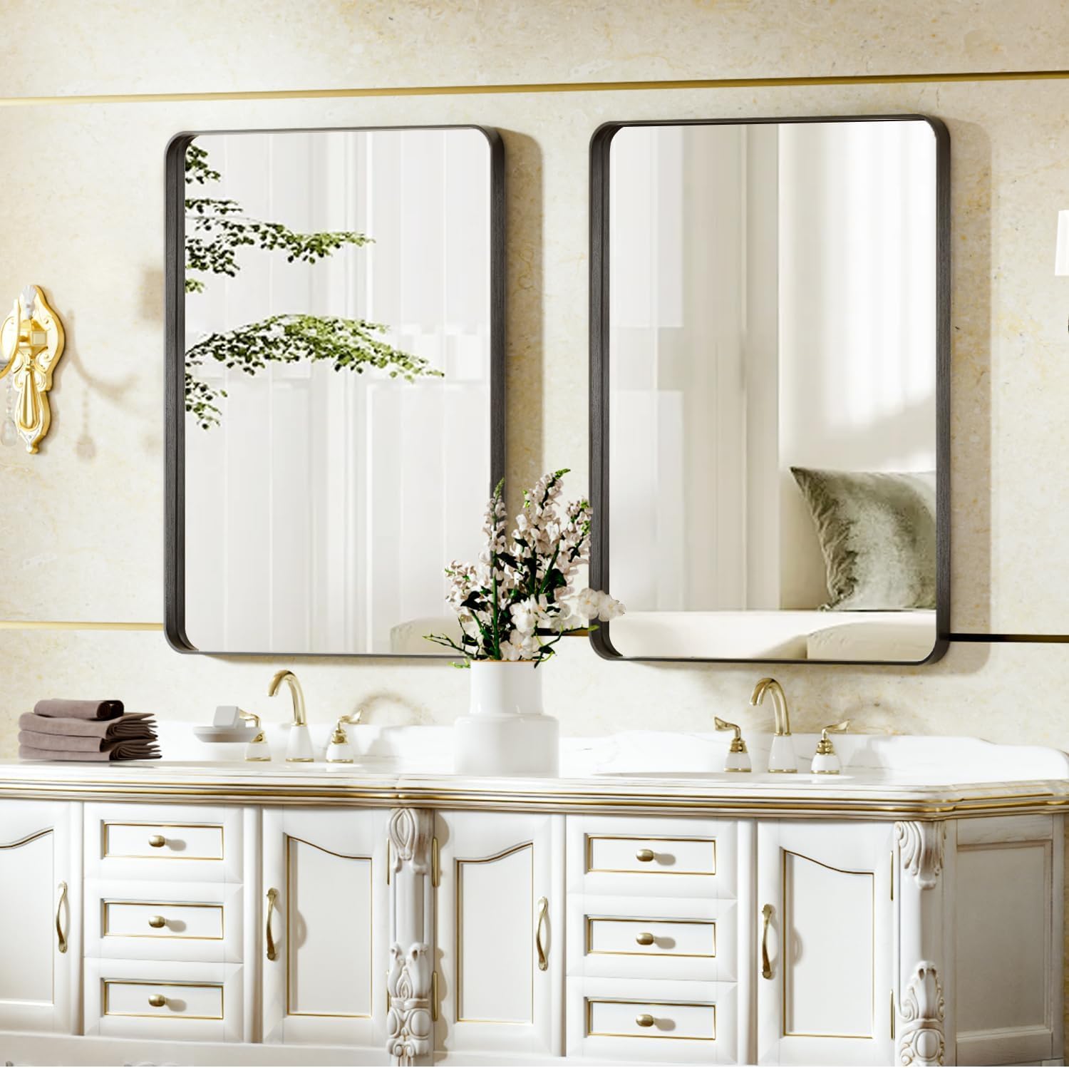 Aluminum Alloy Body: The beautiful black toilet mirror is fabricated from aluminum alloy body materials, which is light-weight and never straightforward to deform or paint off, making it a really perfect hanging mirror. The metallic look makes the room much more excellent