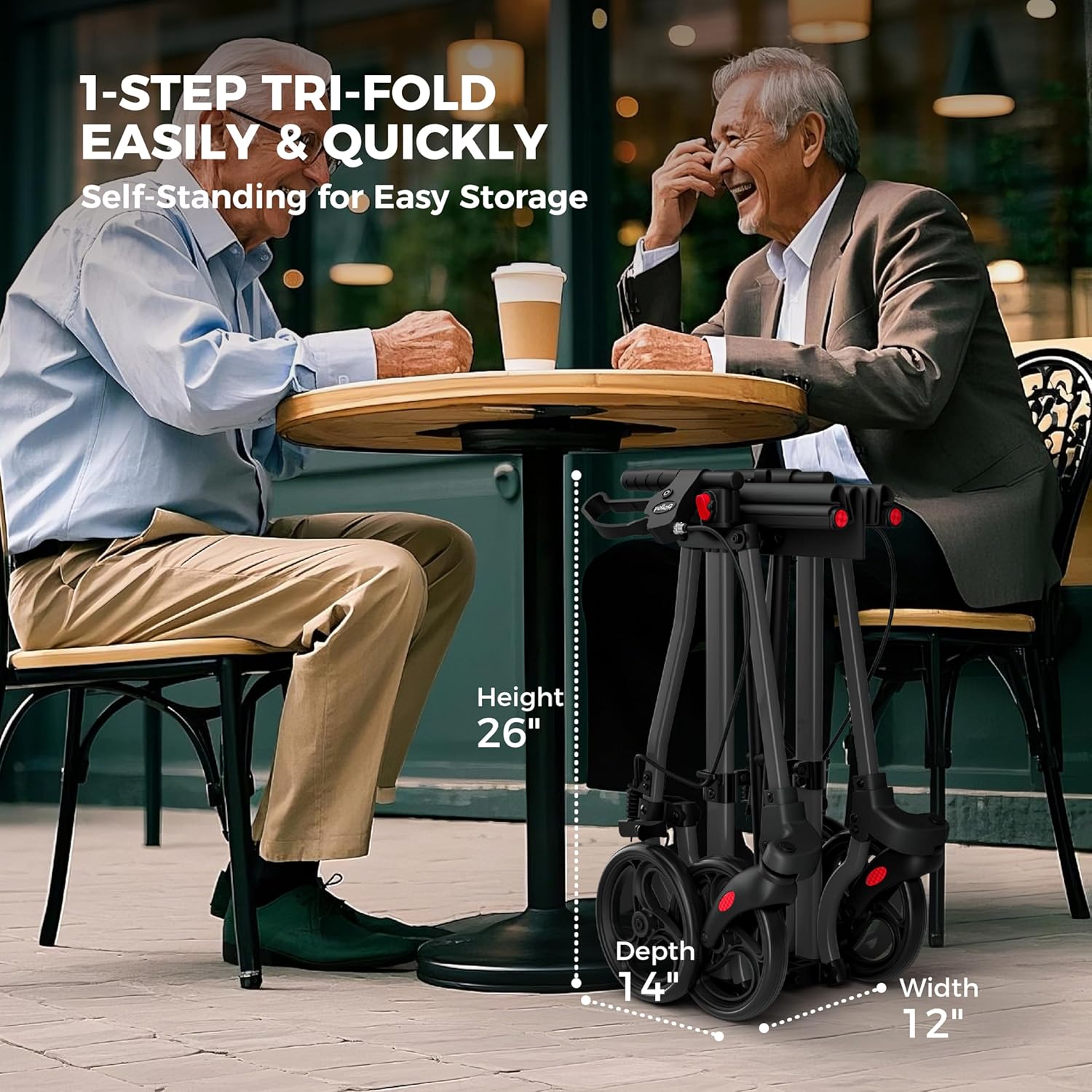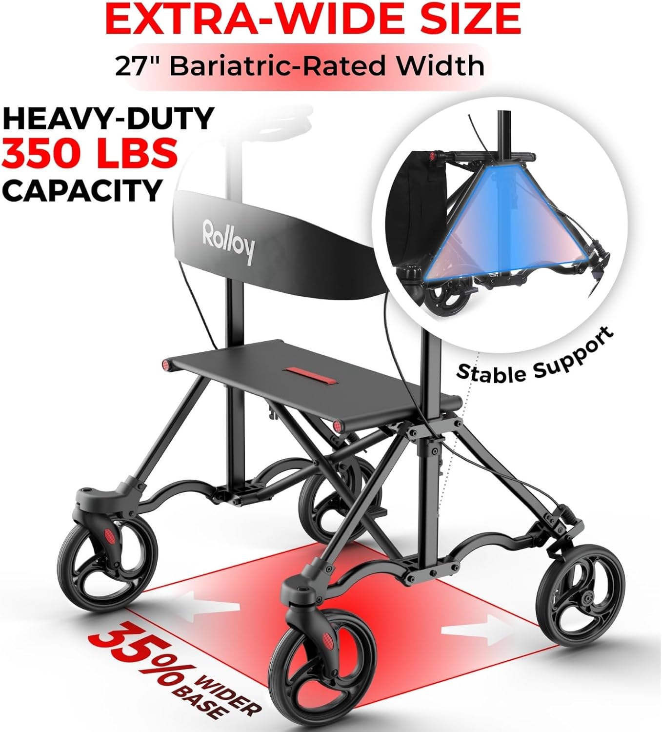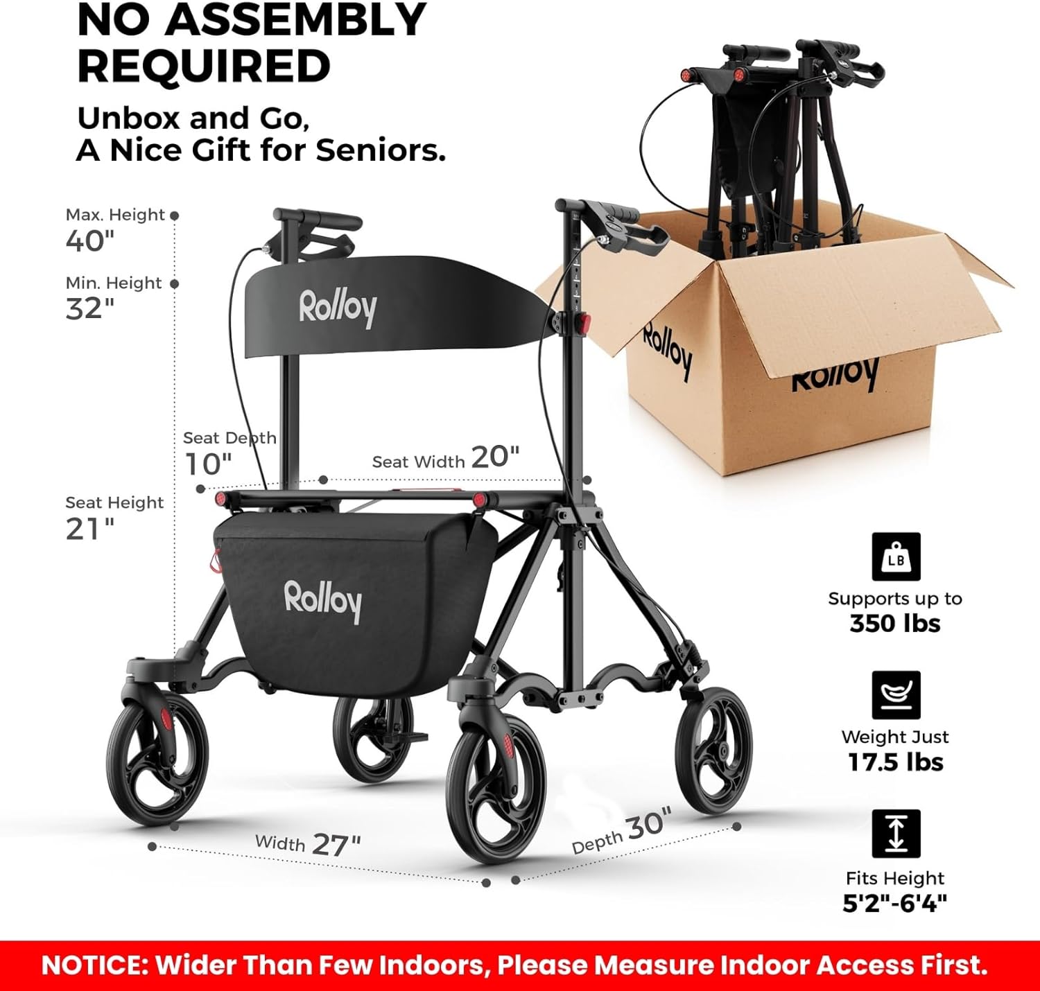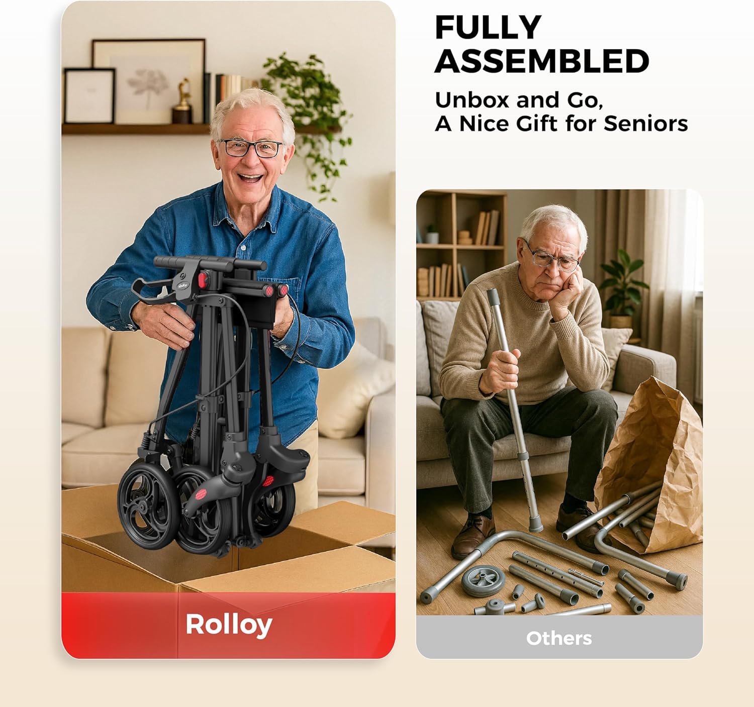 [Ultra Compact, Travel Anywhere with Ease] Rolloy Compact Grasp Rollator walker with seat transforms right into a compact 24″ suitcase measurement with revolutionary 3-way folding design. Excellent for journey, it’s 50% smaller than commonplace rollators, effortlessly becoming into automotive trunks, underneath restaurant tables, and even airplane cabins. Take it wherever life takes you. Moreover, the fold-lock mechanism ensures the walker stays compact throughout transport and storage, whereas the fold-lock handlebar supplies a safe grip for simple lifting. Excellent for seniors looking for a dependable, moveable, and hassle-free mobility resolution