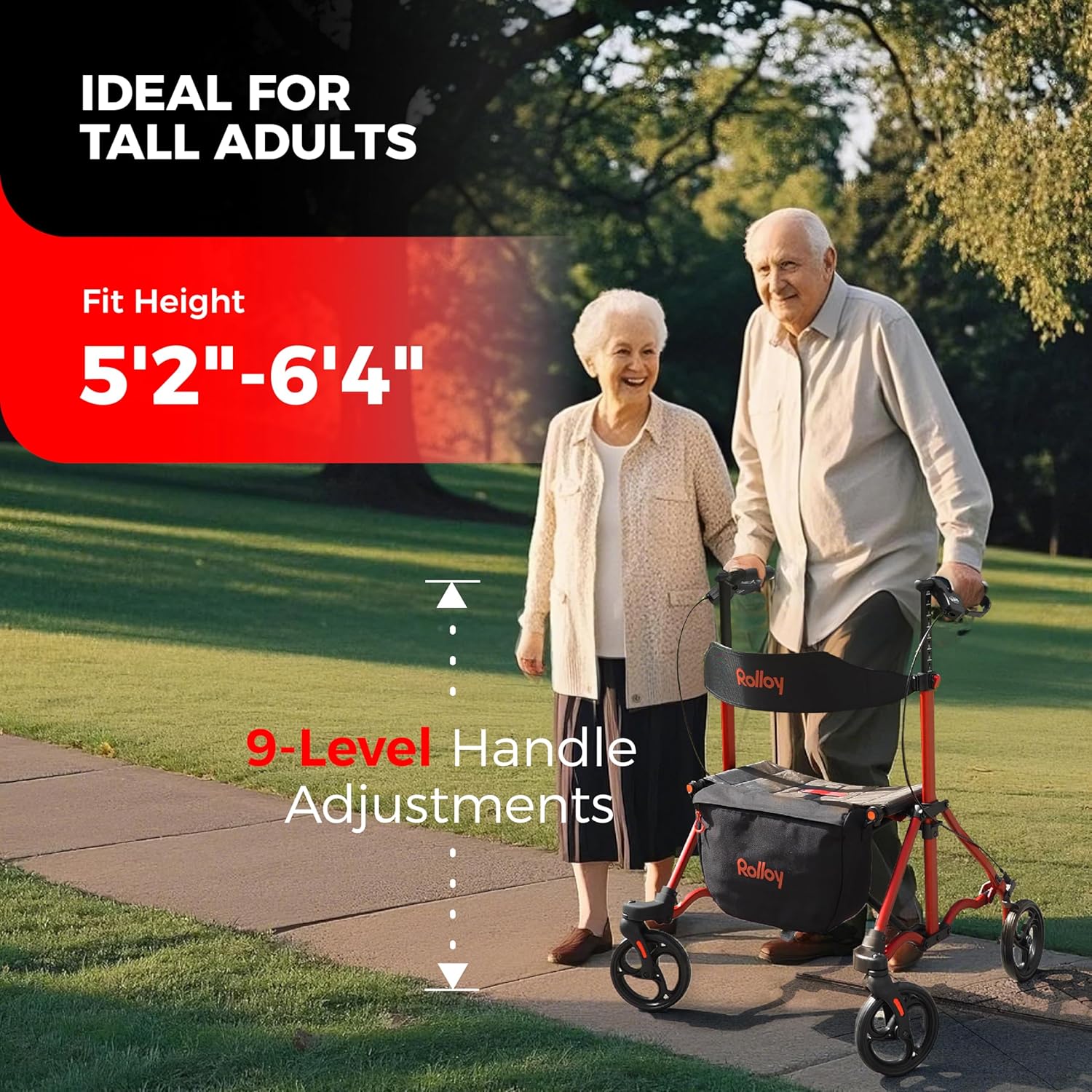 [Extra Wide for Bariatrics] Designed with inclusivity in thoughts, this grownup walkers for seniors boasts an extra-wide 20″ seat—15% bigger than commonplace fashions—to eradicate again pressure and supply ample assist. Excellent for taller people, the rollator for tall males over 6ft provides 9 adjustable peak settings, accommodating customers from 5’2″ to six’4″. Its ergonomic design promotes correct posture, considerably decreasing elbow and again ache, making it a really perfect alternative for each tall seniors and bariatric customers. Expertise unparalleled consolation and assist tailor-made to your distinctive wants