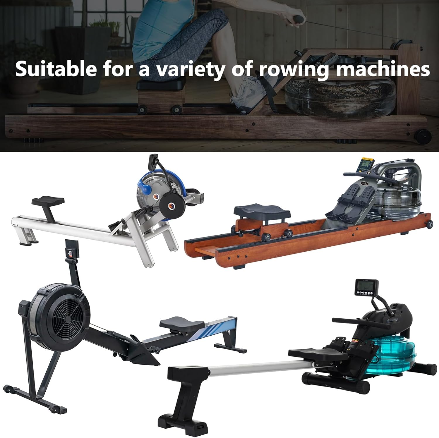 This rowing machine cowl matches most types of rowing machines, like single-rail, double-rail, multi-purpose, rocking, and butterfly all-purpose.