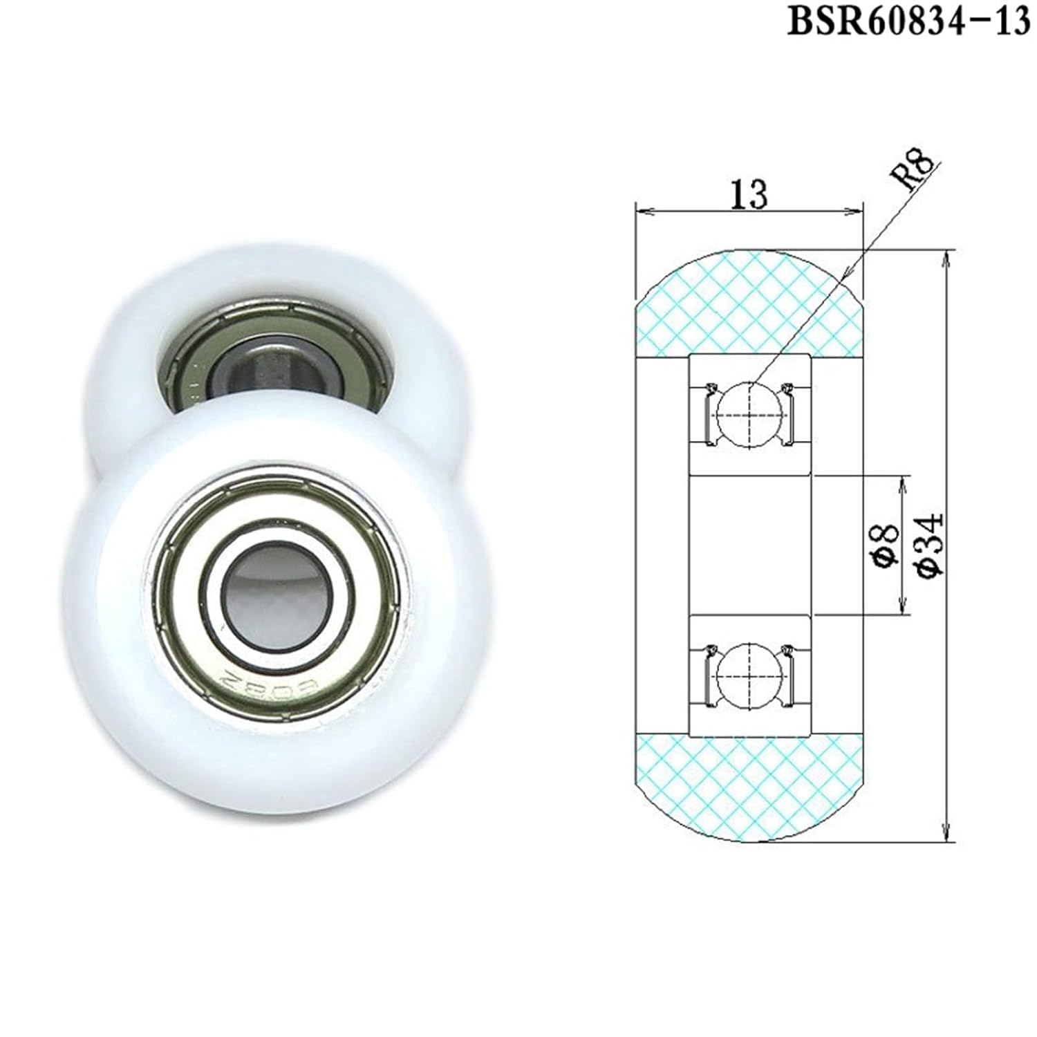 Rowing Machine Wheel BSR60834-13 Rower Seat Curler 8 * 34 * 13mm Coate…