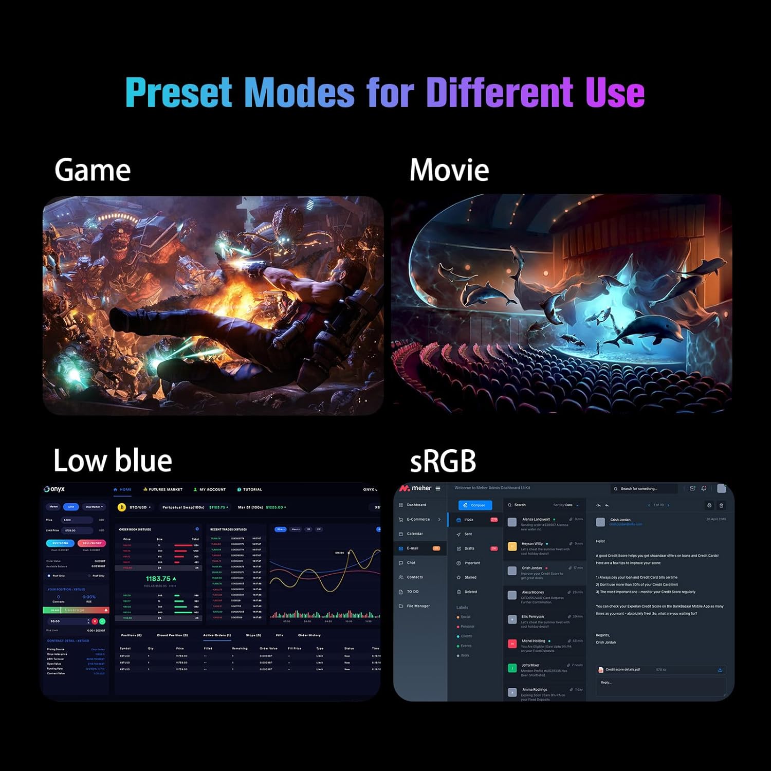 Refresh Charge: 100Hz丨AMD FreeSync丨Brightness: 250Nits丨Movie/Workplace/Low Blue/Sport Modes丨RTS/FPS/RACING PC Display Help