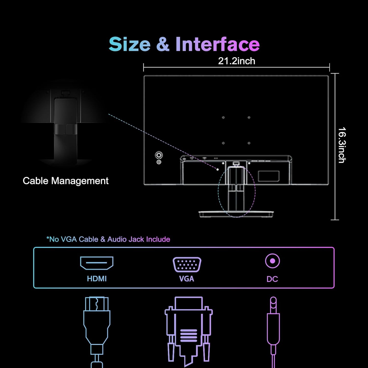 Ergonomic Design:Cable Managed Design & Simple Mount Stand丨-5°~15°Tilt, 178°V/H Viewing Angle, 75×75mm VESA;Low Blue & Flicker-Free for Eye Care