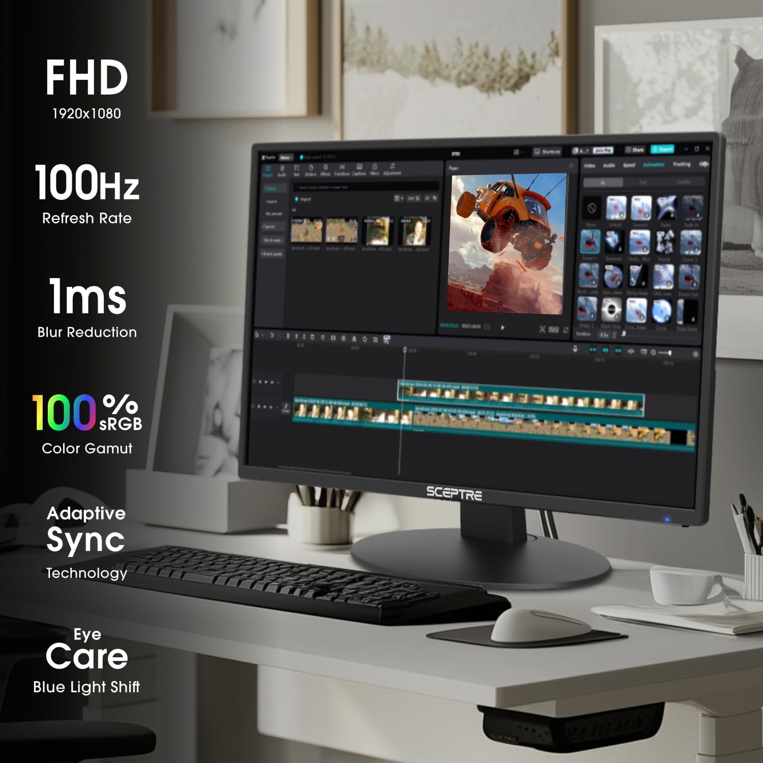 Blur the Traces: Work and Play Seamlessly with the Sceptre Important Gaming Monitor E275 The strains between work and play are blurring. The Sceptre E275 monitor bridges the hole, providing the right mix of options for each productiveness and high-octane gaming. Energy By Your Day: Sharp Focus: Deal with spreadsheets and inventive tasks with gorgeous 1920×1080 decision. Each element is crystal clear, making certain pixel-perfect precision for all of your duties. Enhanced Workflow: Expertise {smooth} visuals and a responsive really feel with a 100Hz refresh charge. Say goodbye to lag and hey to a seamless workflow, whether or not you are modifying movies or dominating deadlines. Unleash Your Interior Gamer: Immersive Expertise: Dive into charming in-game worlds on a vibrant 27-inch show. Slim bezels maximize your viewing space, pulling you deeper into the motion. Easy Gameplay: Conquer each problem with fluid, responsive graphics. The 100Hz refresh charge eliminates choppiness and delivers a successful edge in fast-paced video games. Console Prepared: Join effortlessly to your PC or gaming console with quite a lot of ports, together with 2 x HDMI. The E275 seamlessly integrates into your present setup. The Important Selection: The E275 eliminates pointless bells and whistles, specializing in core efficiency and performance. Get pleasure from a smooth, minimalist design that enhances each your workspace and gaming station. This monitor is constructed to final, delivering lasting sturdiness for lengthy hours of use. Sceptre E275: The place Work Ethic Meets Successful Efficiency.