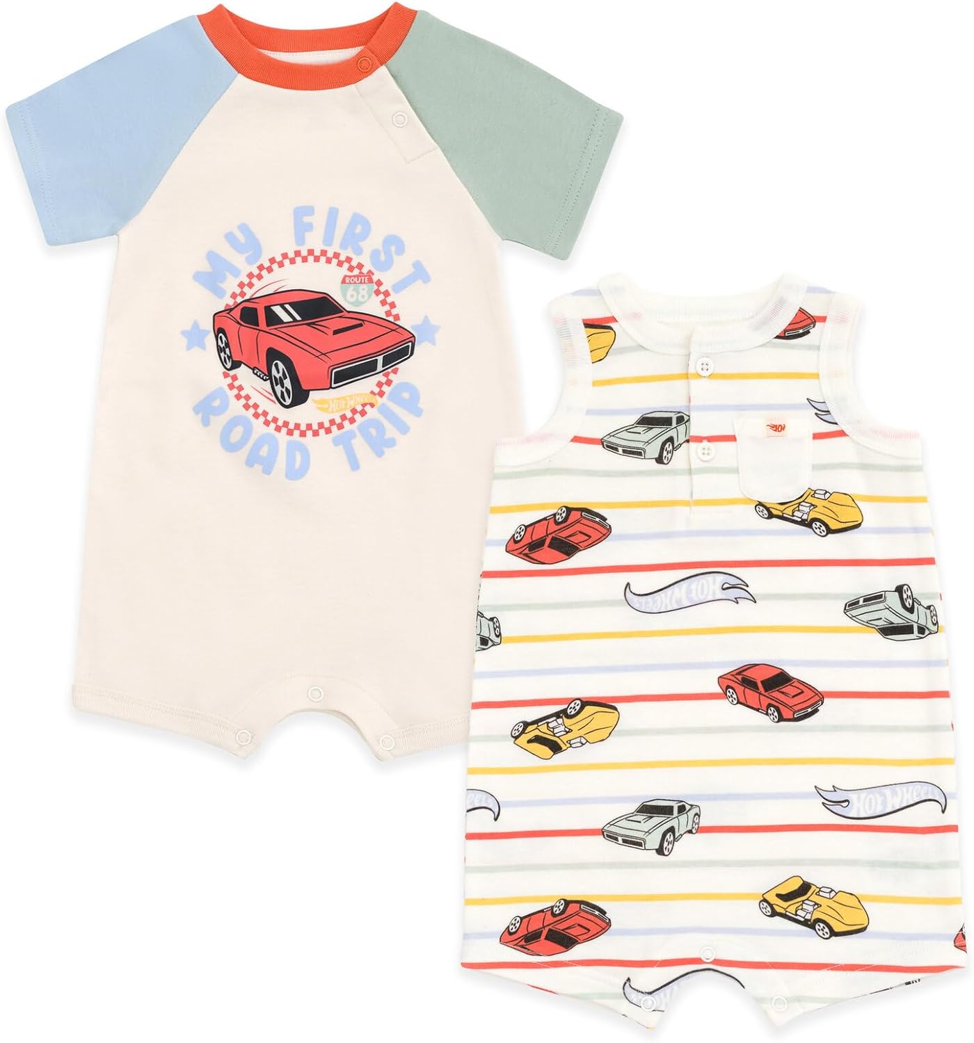 Scorching Wheels Child 2 Pack Rompers New child to Toddler Sizes (New child – 24 M…