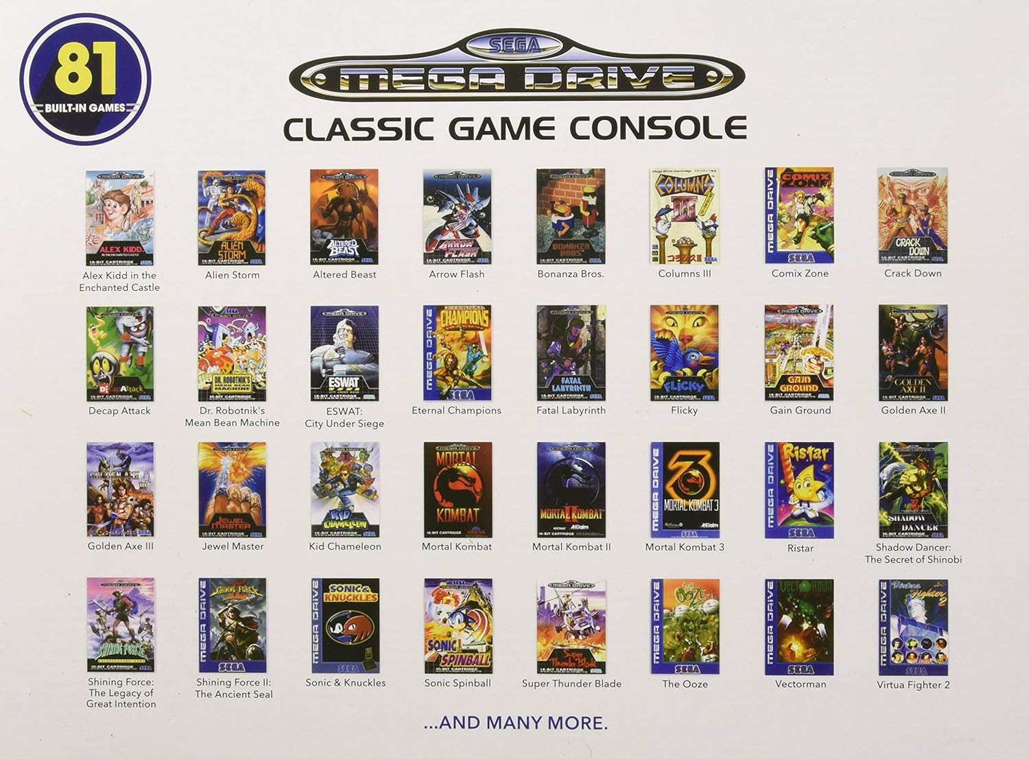 Contains 81 traditional sega(r) video games built-in, together with sonic(r), Mortal kombat(r) & extra