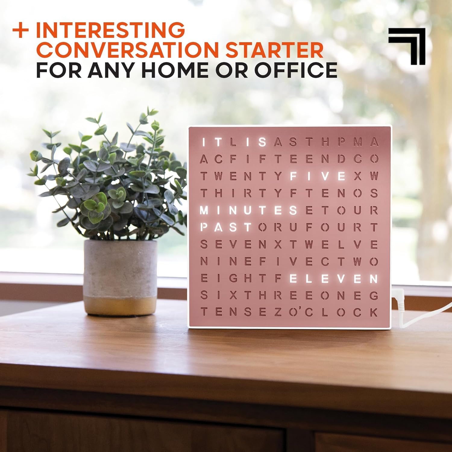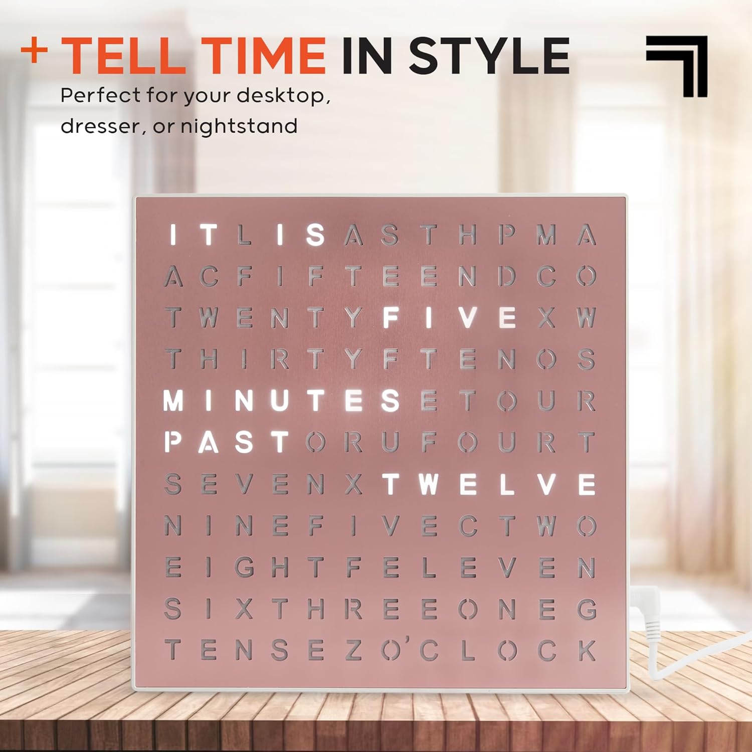 SLEEK DESIGN & FUNCTIONAL ELEGANCE: Elevate your house or workplace decor with the delicate LED Mild-Up Phrase Clock, that includes a smooth rose gold end and compact dimensions (7.75″ x 7.75″ x 1″) ideally suited for desks, nightstands, or wall shows in any trendy residing house.