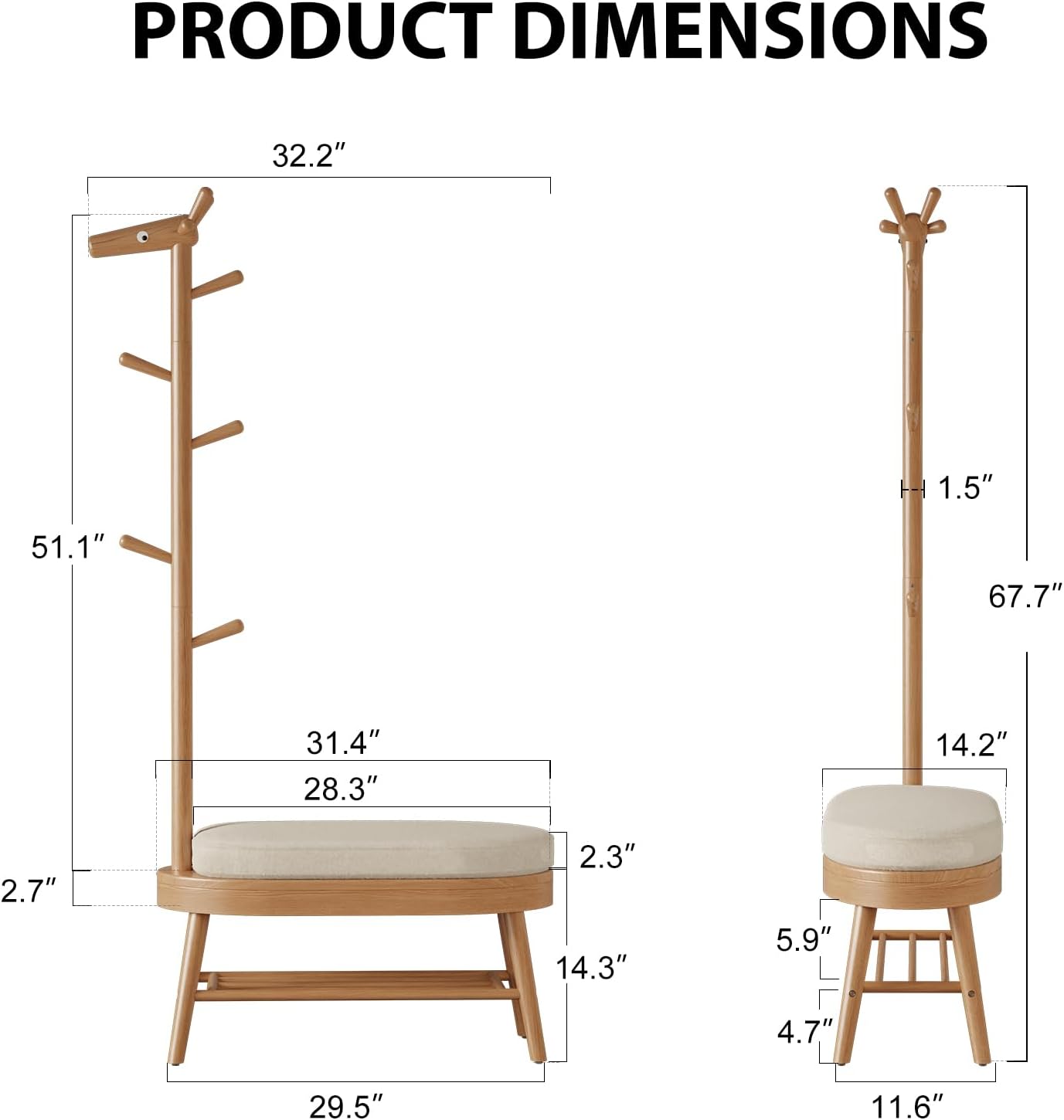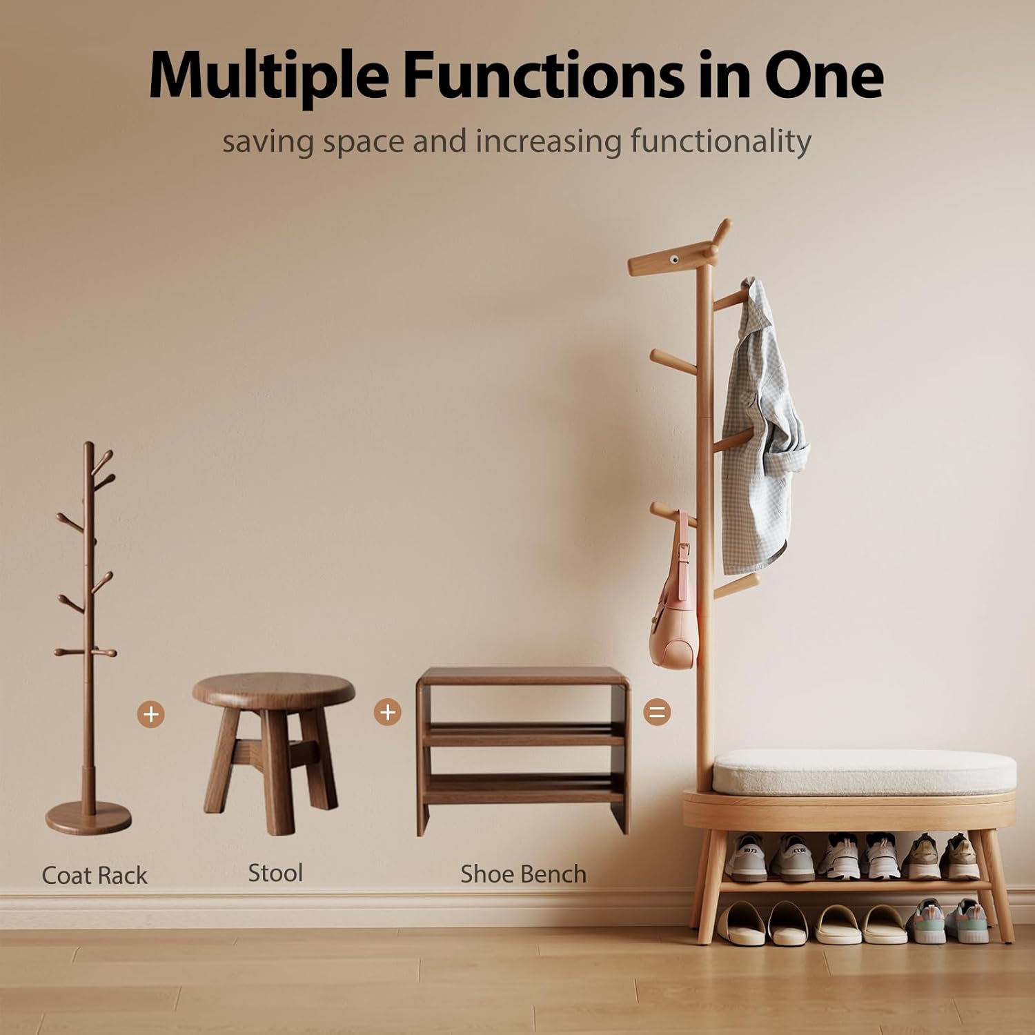 MULTIFUNCTIONAL DESIGN: Our coat rack and shoe bench combo is a product with a multifunctional design, good for altering sneakers, hanging coats or baggage, and an ornamental piece when not in use, this shoe bench with wood coat rack affords a complete resolution for many day by day use situations.