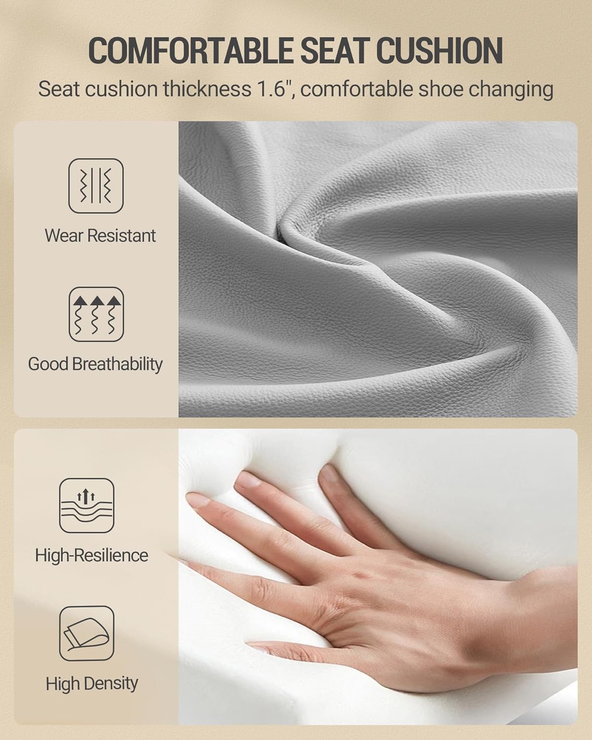 [Comfortable Thick Seat Cushion] The bench has a 1.8 inch thick seat cushion, which is very elastic, delicate, making it very snug to take a seat on.The delicate and comfy leather-based cushion will increase your cleansing comfort