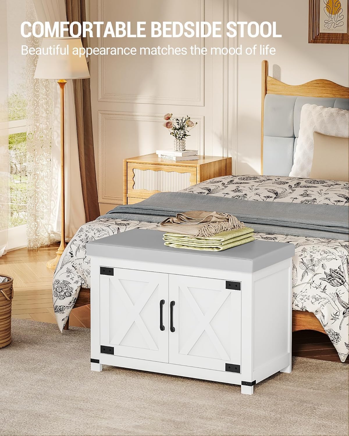 [Farmhouse Style Design] The shoe altering stool is provided with two farmhouse barn doorways and cushioned seats with classical farmhouse parts. It has pure variations in texture, shade, and texture, appropriate for various dwelling ornament kinds