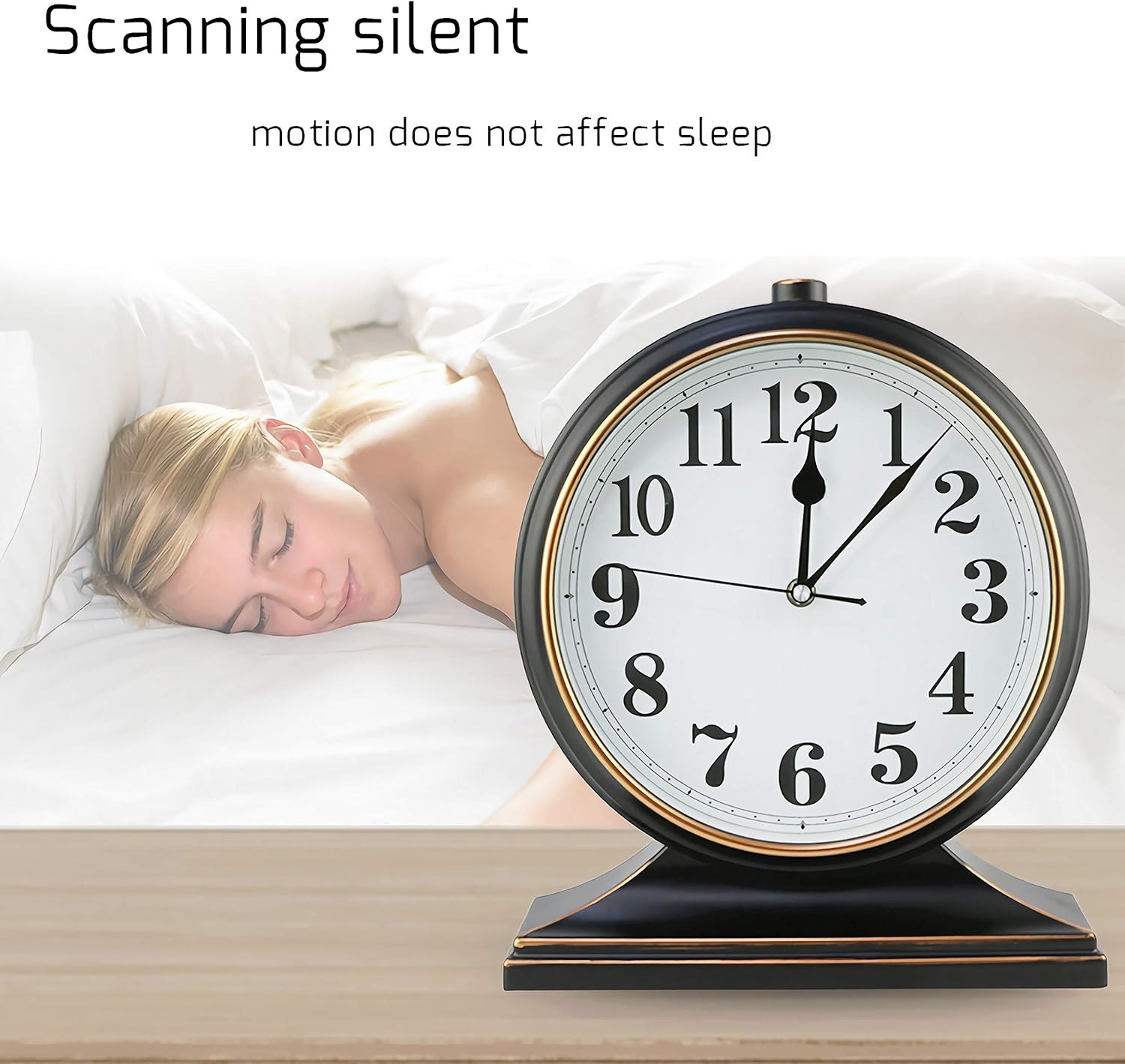 【Silent desk clock】 desk clock adopts the newest motion, it’s silent and doesn’t tick, and the scanning motion is silent. Even in a quiet night time, you may have a quiet sleeping/working atmosphere