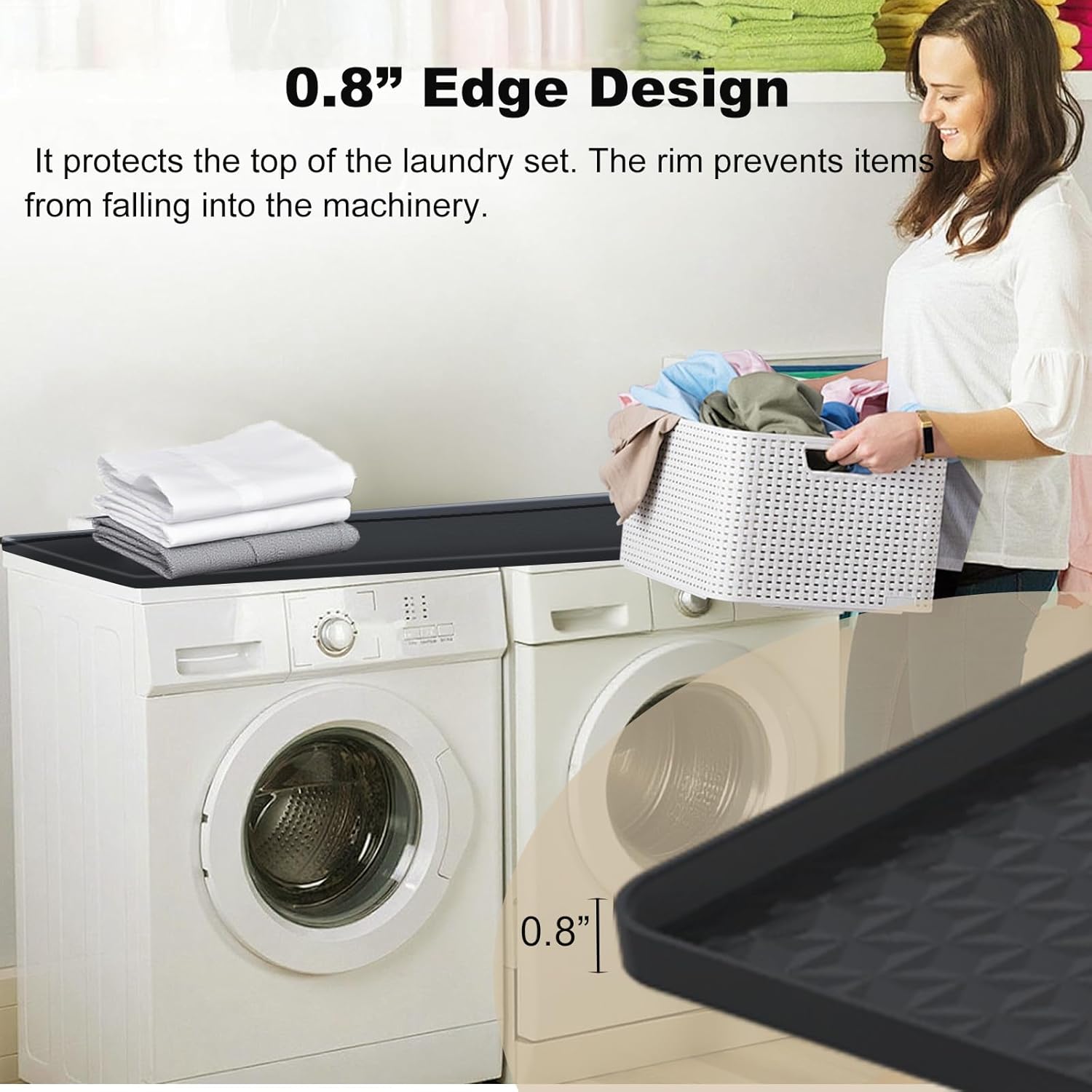 Non-Slip & Spill-Proof Design – The laundry coutertop over washer and dryer contains a textured non-slip floor with a safe, steady backside that stays in place. And the washer dryer countertop cowl with a 0.8″ raised edge that successfully prevents water, detergent, or small objects from spilling over, preserving the laundry space clear and arranged.