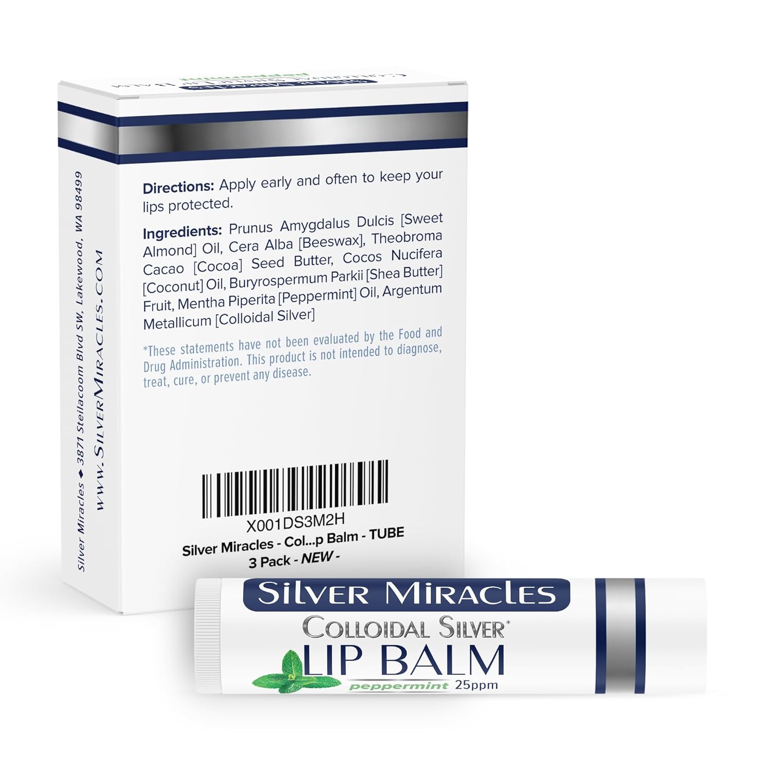 Silver Miracles – Colloidal Silver Lip Balm – TUBE – 3 Pack