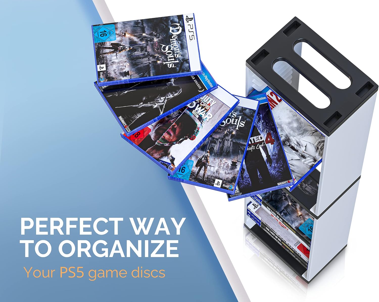 [Space-Saving Design for Compact Setup]: Release useful shelf house with this modern and compact disc holder. The vertical design of this PS5/ PS4/PS3 appropriate sport storage minimizes footprint whereas providing an organized and classy resolution on your gaming equipment.
