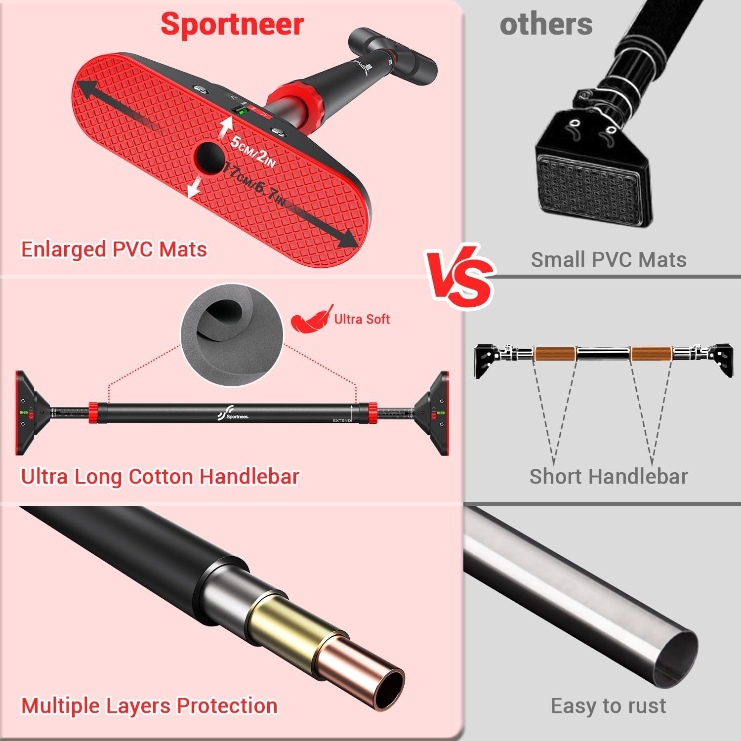 Built-in, Extensible Construction: In contrast to most 2-section foam bars, this doorway pull up bar options an extremely lengthy, built-in anti-slip cotton handlebar for a versatile grip. It is sweat-resistant, odorless, and sturdy. Twist the bar to regulate its size from 29.5 to 37 inches (75 to 94 cm) for varied exercises like pull-ups, sit-ups, push-ups, stretching and extra