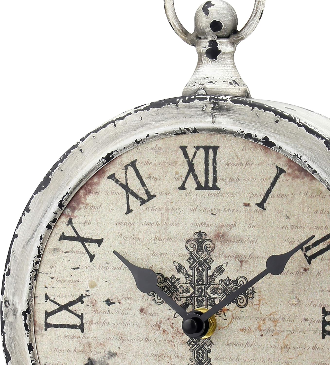 Add a contact of classic flare to your own home decor with Stonebriar’s vintage white desk prime clock. This clock includes a worn white painted end for a retro French Nation decor look. The face of this clock options an vintage cross design within the heart with worn written verses. Clock additionally comes with a small hanging loop so you possibly can simply carry it from one room to the following. Clock measures 13 inches in top and eight inches in width. It’s the good dimension for the mantel, cabinets, or on any desk prime. This distinctive clock is the proper addition on your lounge, kitchen, eating room, rest room, or bed room. Stonebriar’s classic clock is battery operated and requires a single AA battery (not included) Purchase your Stonebriar vintage white desk prime clock for your self or give it as a present for Christmas, birthdays, and housewarmings.