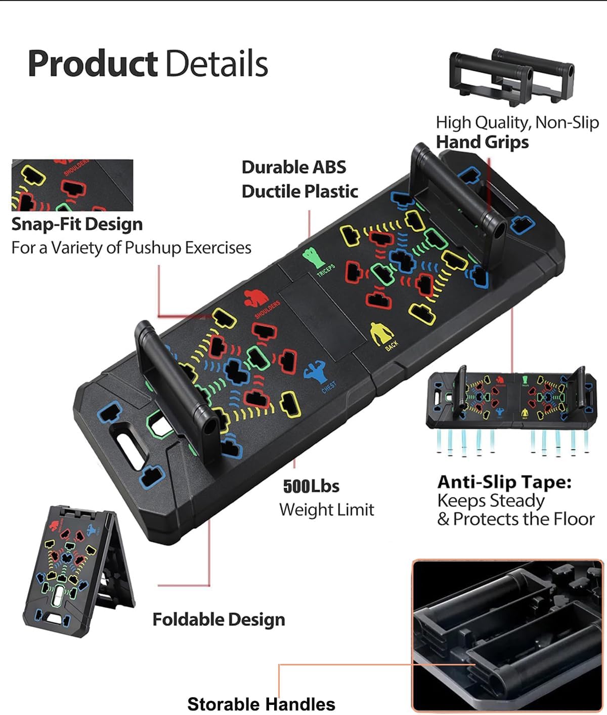 Rework your own home exercise routine with this versatile 16-in-1 push up board system. This modern health gear encompasses a complete array of colour-coded positions that concentrate on completely different muscle teams successfully. The sturdy building contains sturdy push up handles and a non-slip base for steady train efficiency. Excellent for each novices and health fans, this Prss up board permits you to carry out varied chest, shoulder, again, and arm workouts. The foldable design makes it simple to retailer and transport, while the included train information helps you maximise your exercise potential. Whether or not you are trying to construct energy, improve muscle definition, or preserve health, this multi-functional push-up stand system adapts to your health degree and targets. Appropriate for each women and men, it is a wonderful addition to any residence fitness center setup, offering a professional-grade exercise expertise within the consolation of your individual area.