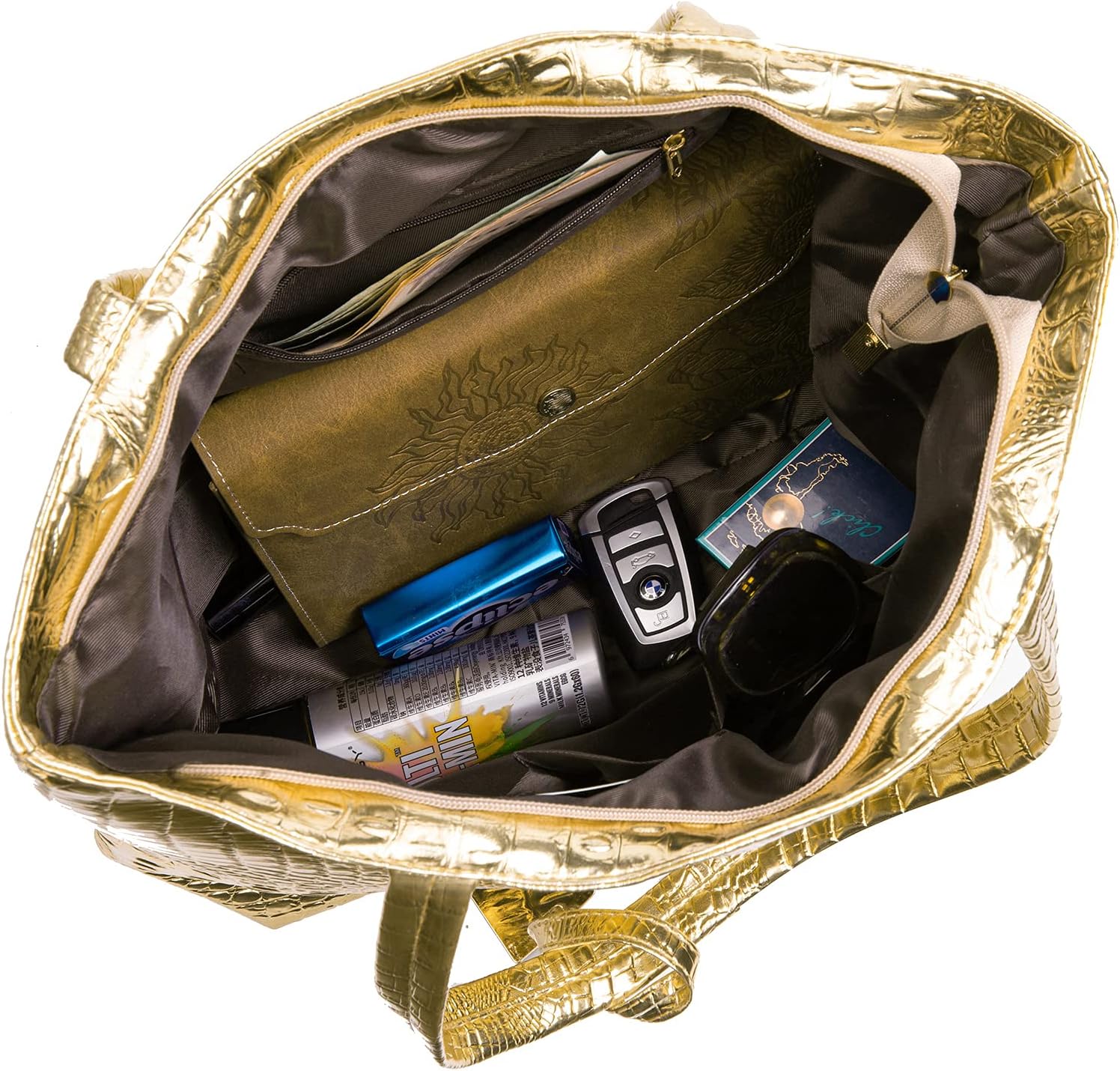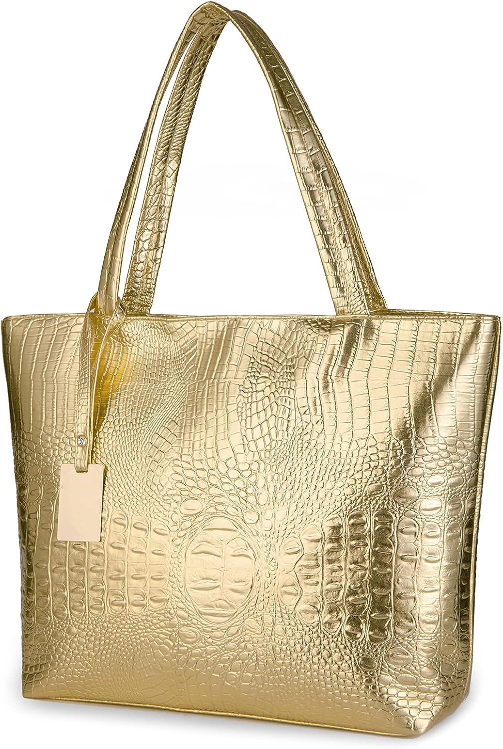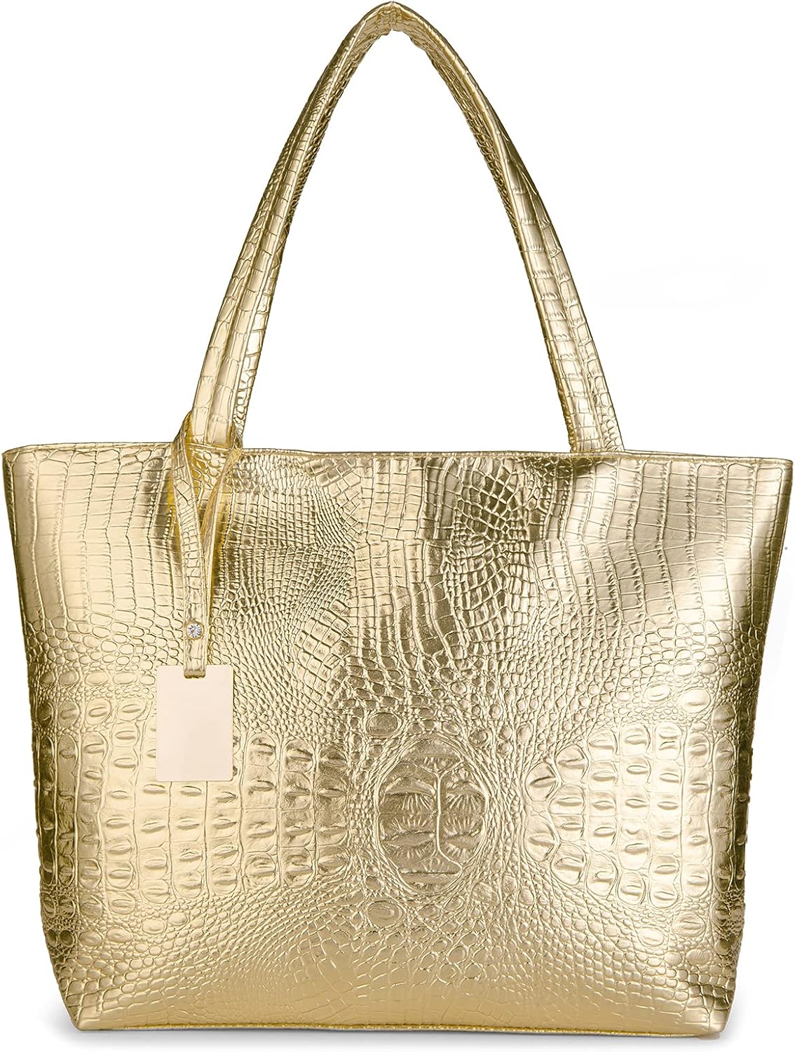 Design – Crocodile Sample and steel luster Leather-based, Extra lighter and trend, Higher giant tote for ladies.
