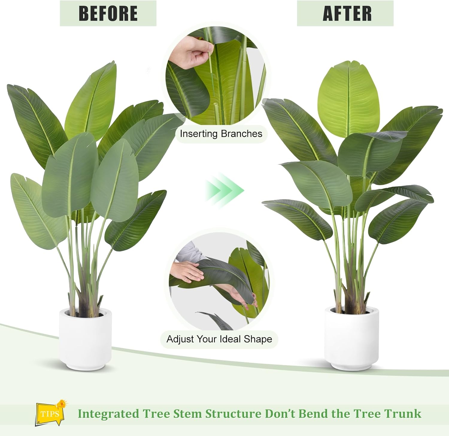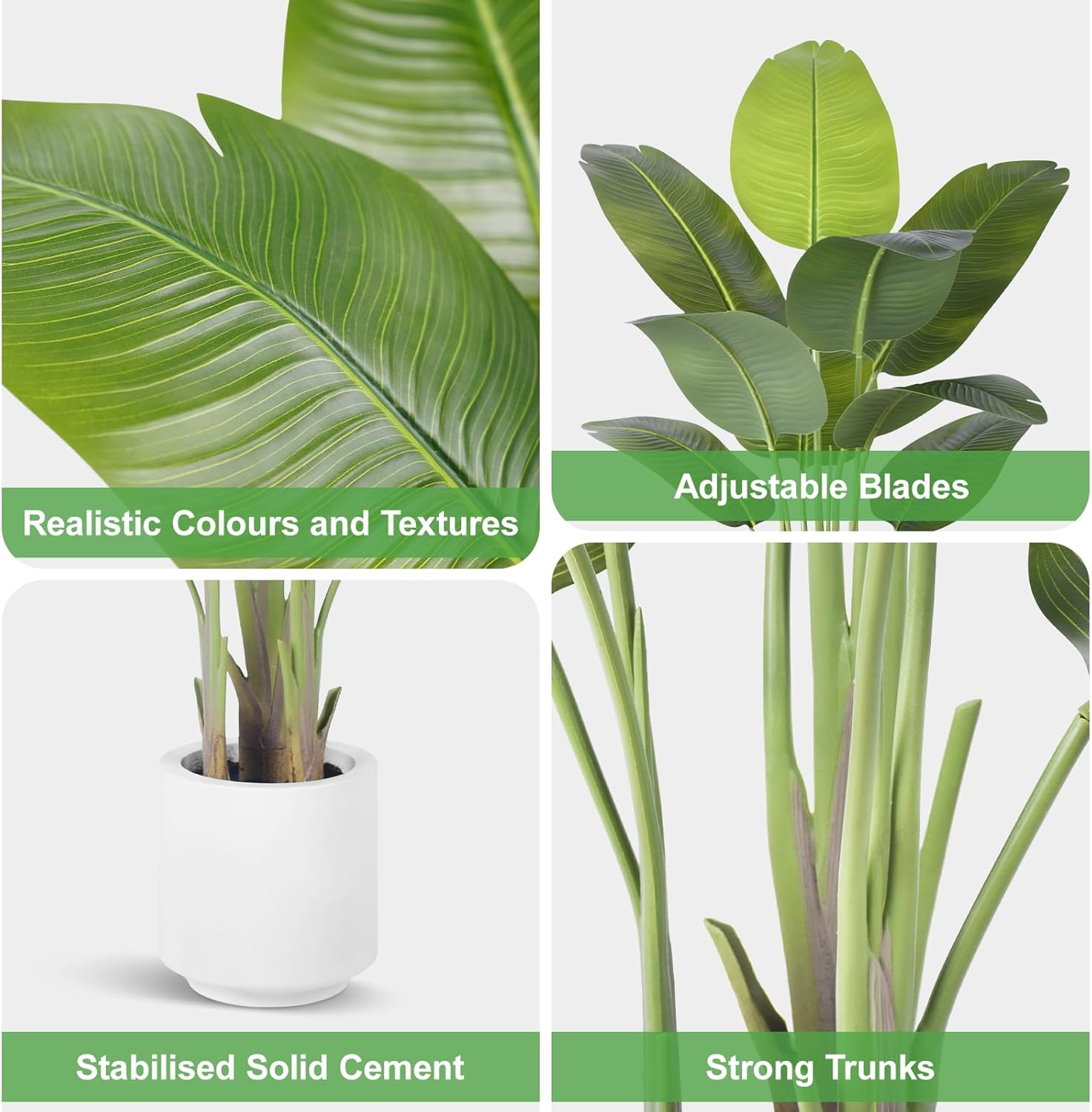 𝐋𝐢𝐟𝐞𝐥𝐢𝐤𝐞 𝐃𝐞𝐭𝐚𝐢𝐥𝐬: The ZEEOZE fake Birds of Paradise plant synthetic tree options life like trunks, adjustable branches, and natural-textured banana leaves. Sturdy polyester trunks guarantee long-term sturdiness, whereas removable leaves with distinct colours received’t fade over time. The adjustable branches include iron wire for versatile positioning. Newly upgraded white planters, adorned with black wooden shavings on the floor, are full of sturdy cement to maintain the massive tree upright and forestall tipping. This pretend tree is an ideal instance of a high-quality synthetic tree