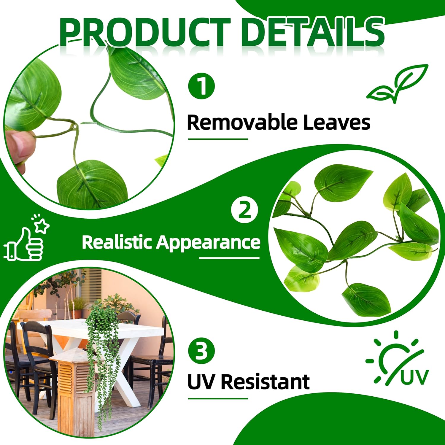 Broad Utility: You possibly can grasp it on the wall, doorways, mirror, banisters, fences, windowsill, conduit pipe, uncovered electrical wiring, stairs, TV wall, and anyplace as you want with this lengthy synthetic hanging vegetation.