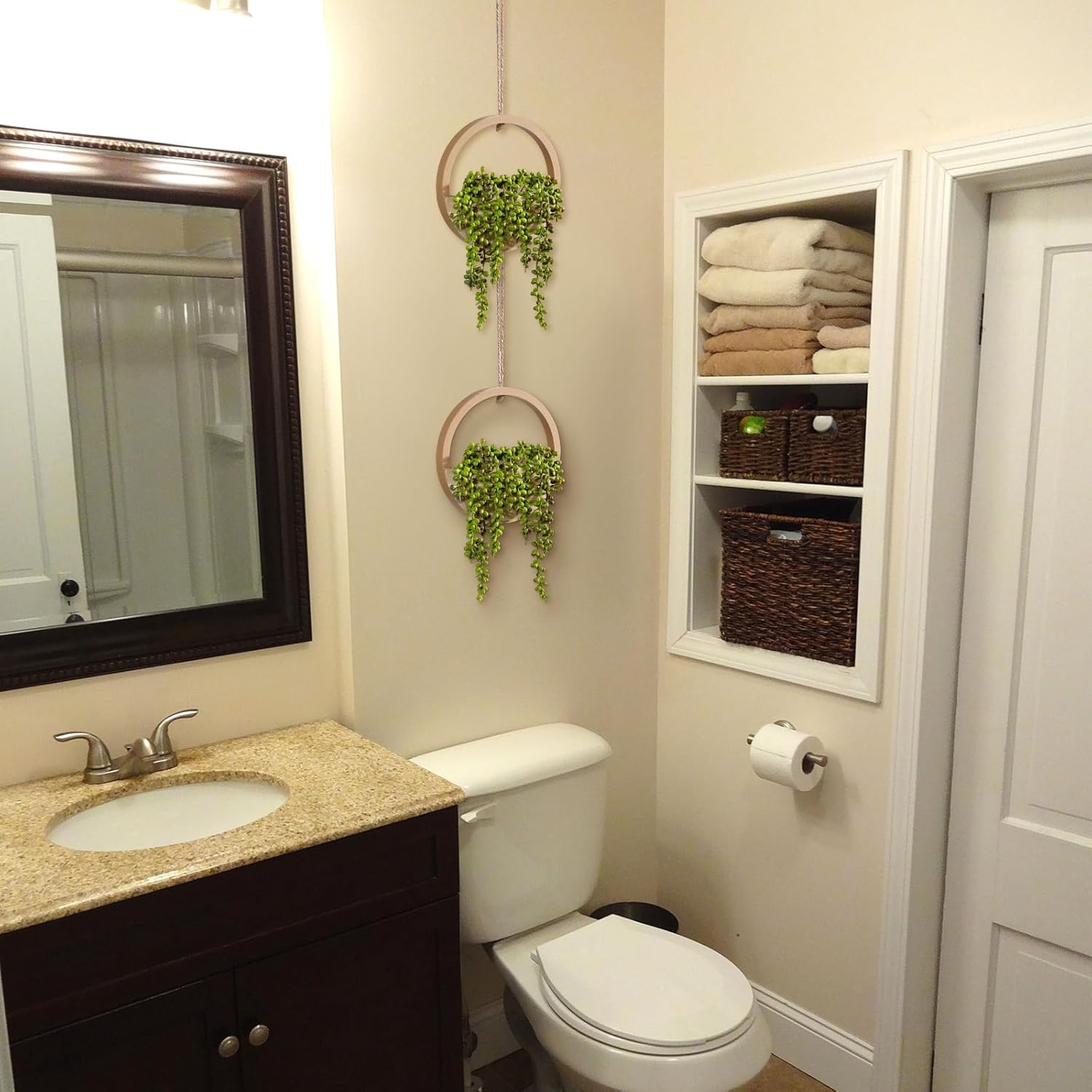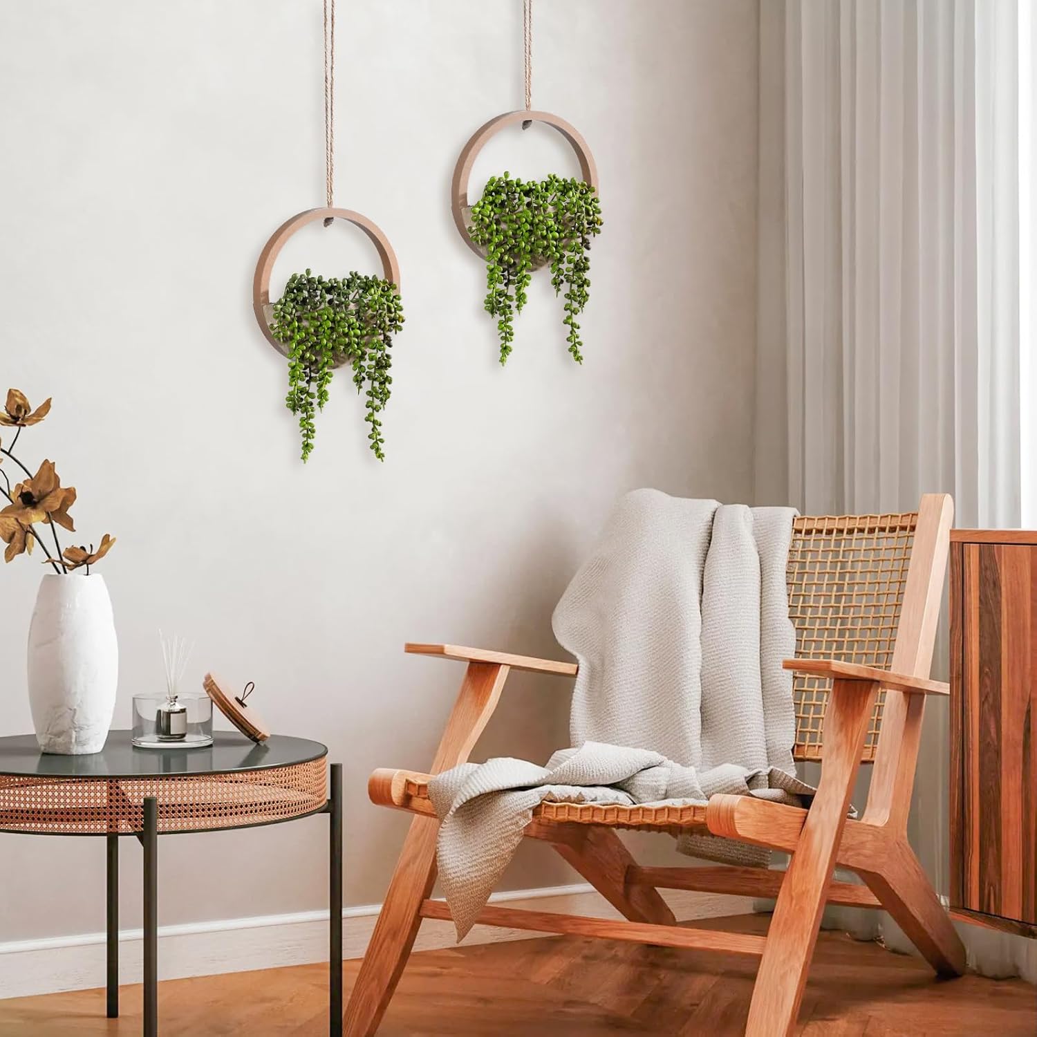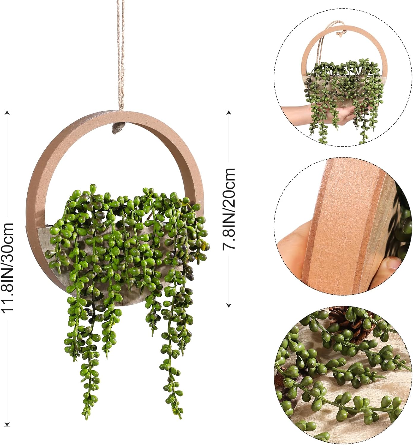 [HIGH-QUALITY MATERIALS]-Our succulents hanging vegetation use wood supplies and beautiful craftsmanship. The main points are beautiful, the contact is practical, and the lushness is proven. The product is sturdy and sturdy, the size of the hemp rope might be adjusted in accordance with your want, and the product might be hung for adornment or positioned flat for adornment