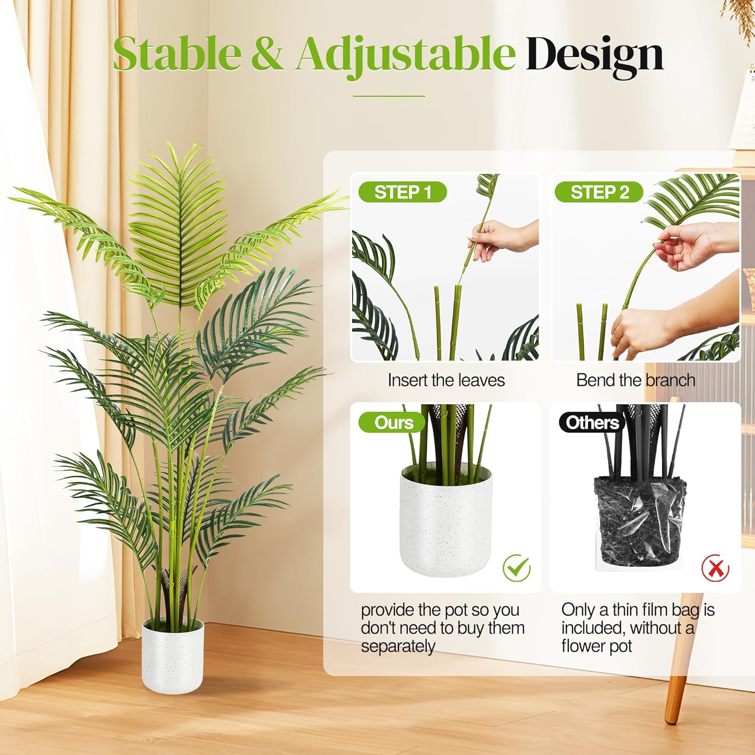 Balanced Aesthetic- Our two pack synthetic areca palm vegetation are more cost effective than buying objects individually. Moreover, utilizing two palm tree decorations enhances the symmetry and steadiness of your decor, making a cohesive and visually interesting atmosphere