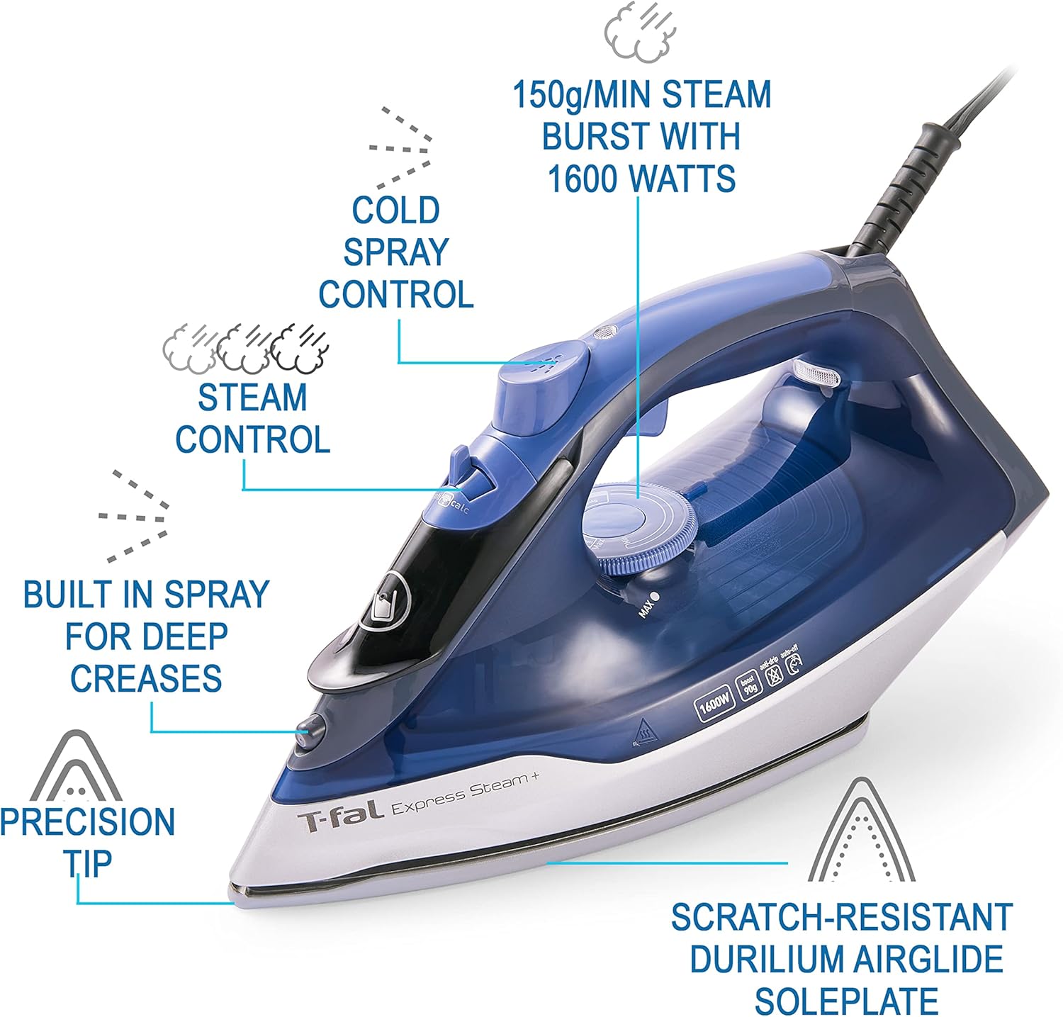 The T-fal Specific Steam Iron options our new, patented Durilium AirGlide soleplate for flawless glide and quick ironing. Geared up with 1600 watts of energy for a quick heat-up and 90 g/min of steady steam output. Specific Steam garments iron is supplied with the T-Fal Durilium Airglide Expertise soleplate for flawless glide and quick ironing. 1600W of energy together with 90g of steam enhance will assist you get fast ends in no-time. The massive water tank and the automated shut-off of this iron will make sure you a stress-free session.