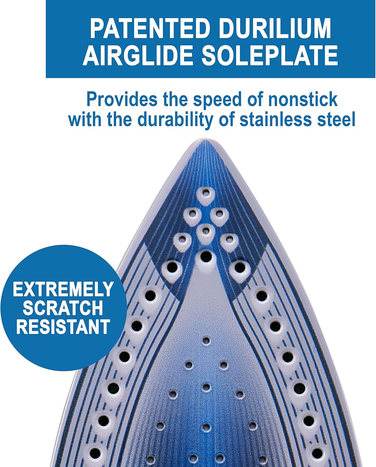 SCRATCH-RESISTANT SOLEPLATE: This iron counts with our new, patented Durilium AirGlide soleplate ensures a clean glide, and is extremely scratch-resistant for long-lasting, sturdy efficiency.