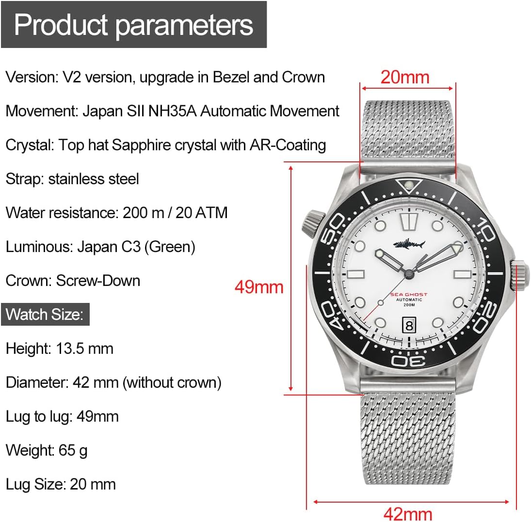 Watch Specification:Motion: Japan NH35A Computerized MovementCase Materials: TitaniumBezel Insert: Ceramic Bezel Insert with luminous dot (inexperienced glowing)Watch Mirror: Sapphire glass with AR-Blue CoatingStrap: Stainless Metal Mesh BraceletWater Resistance: 200 m /20 ATMLuminous: Japan Tremendous Luminous C3Crown: Screw-Down