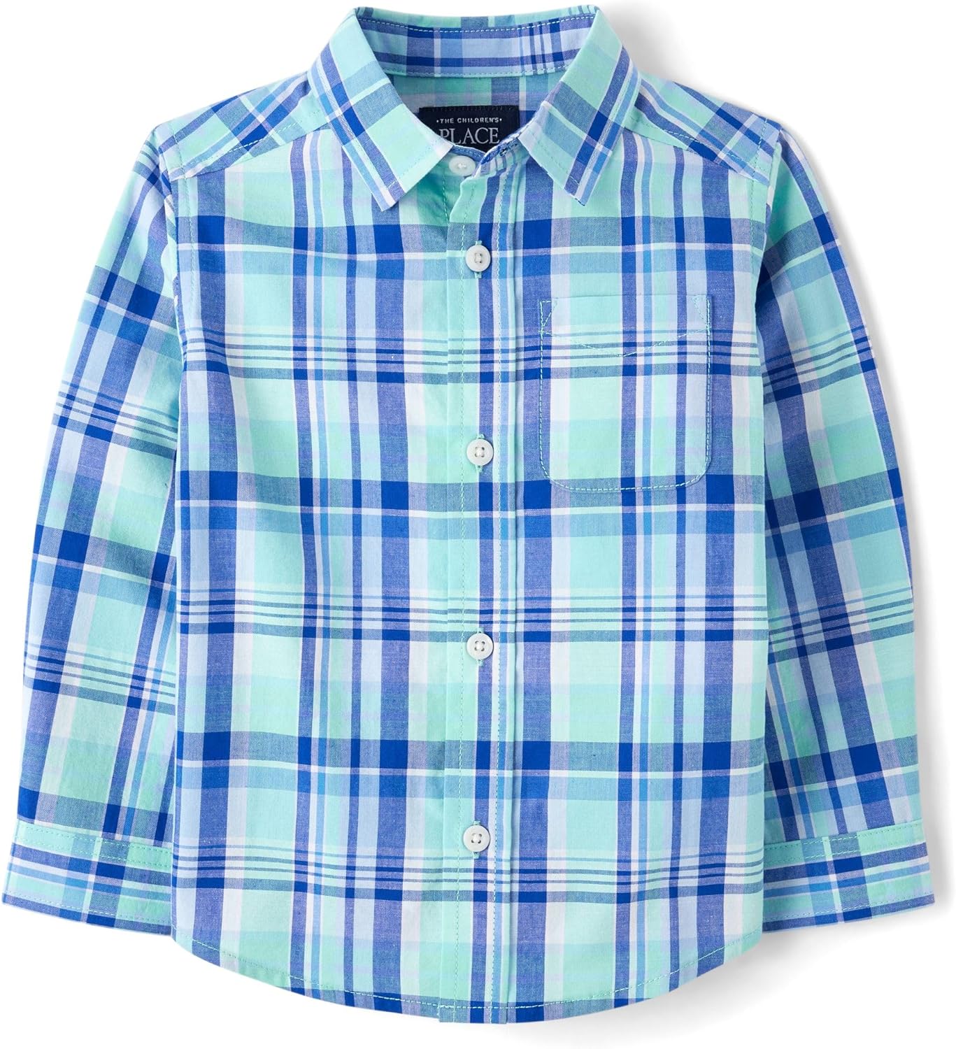 The Kids’s Place,Child Boys,and Toddler Poplin Lengthy Sleeve Button D…