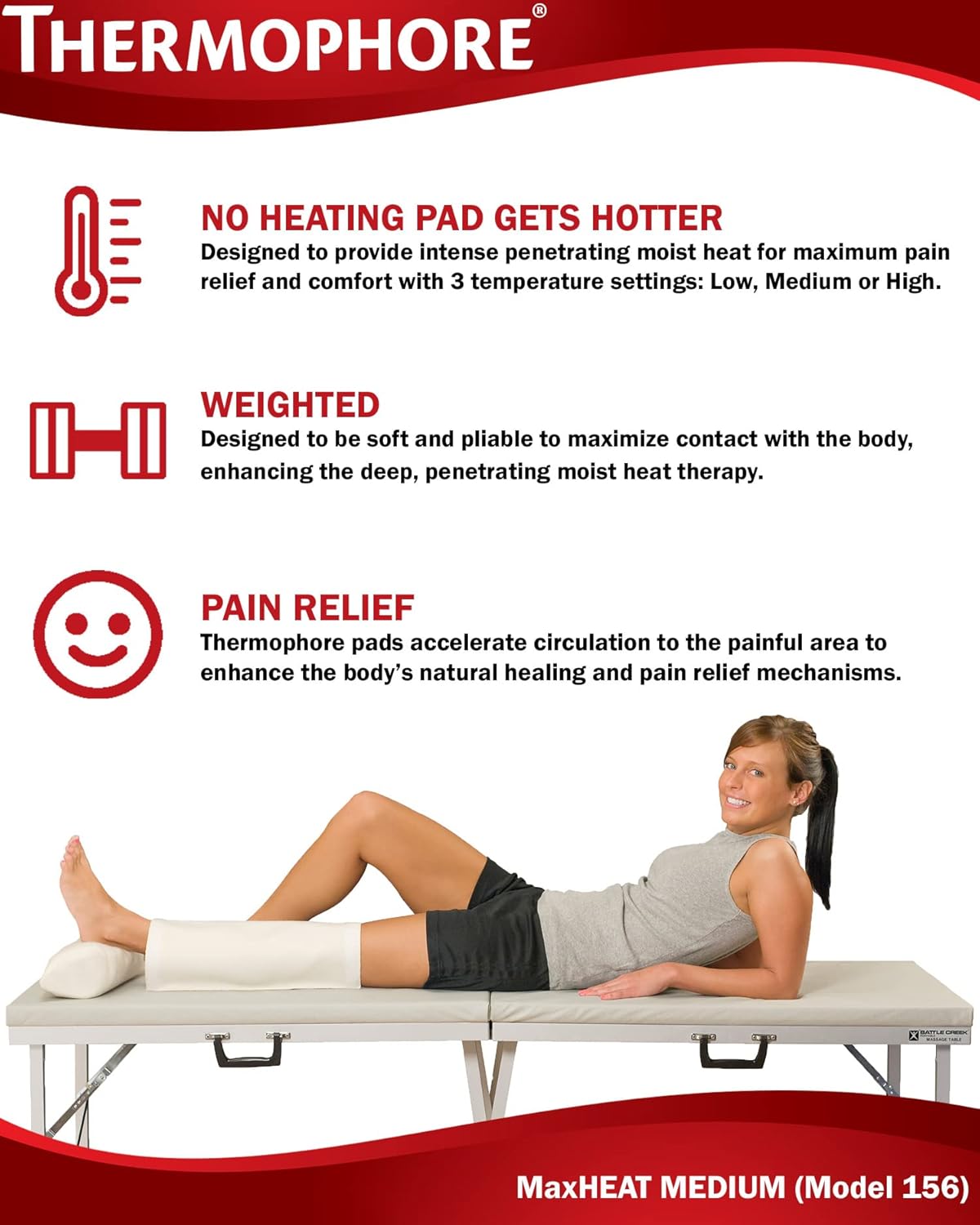 Thermophore warmth packs are 2-3 occasions the burden of your normal heating pad. The weighted design ensures that the pad will mould to the physique and keep in place throughout use. And by molding to the physique, warmth is transferred most successfully, delivering unsurpassed deep-heat remedy and relieving your ache