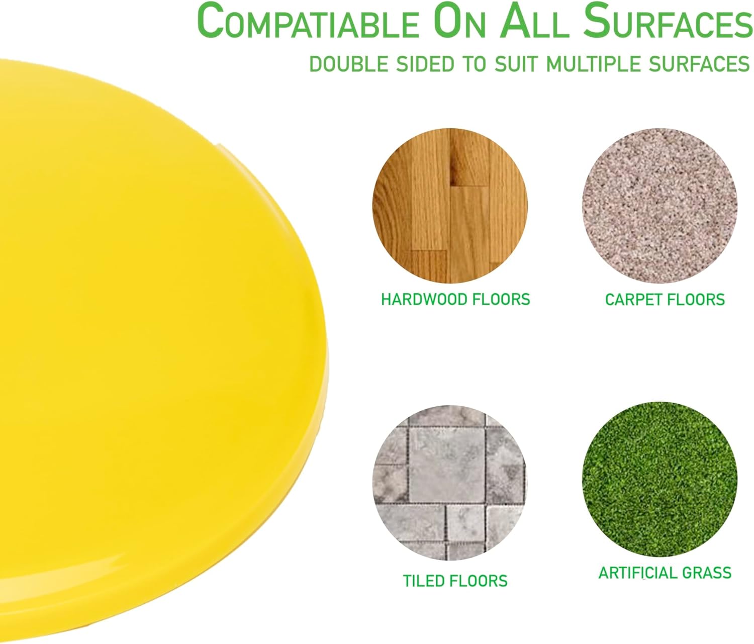 WORK ON MOST SURFACES: These discs work on virtually any floor. Use the graceful plastic facet when exercising on carpets or on blankets or mats, and use the flip facet for hardwood or tile flooring.