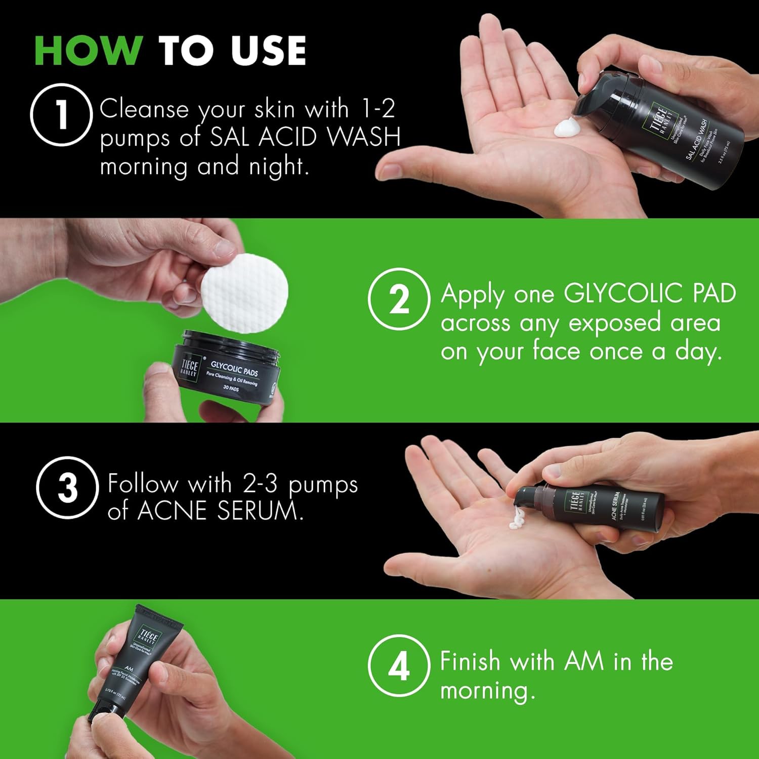 Learn how to Use: Each morning and evening, rinse your face with heat water and cleanse with 1-2 pumps of SAL ACID WASH – spend about 10-15 seconds cleaning your pores and skin, then rinse off with heat water. Pat dry and apply 1 GLYCOLIC PAD as soon as day by day, within the morning. Then, with a clear dry face, dispense 2-3 pumps of ACNE SERUM and therapeutic massage on to your face. End with the AM Moisturizer within the morning.