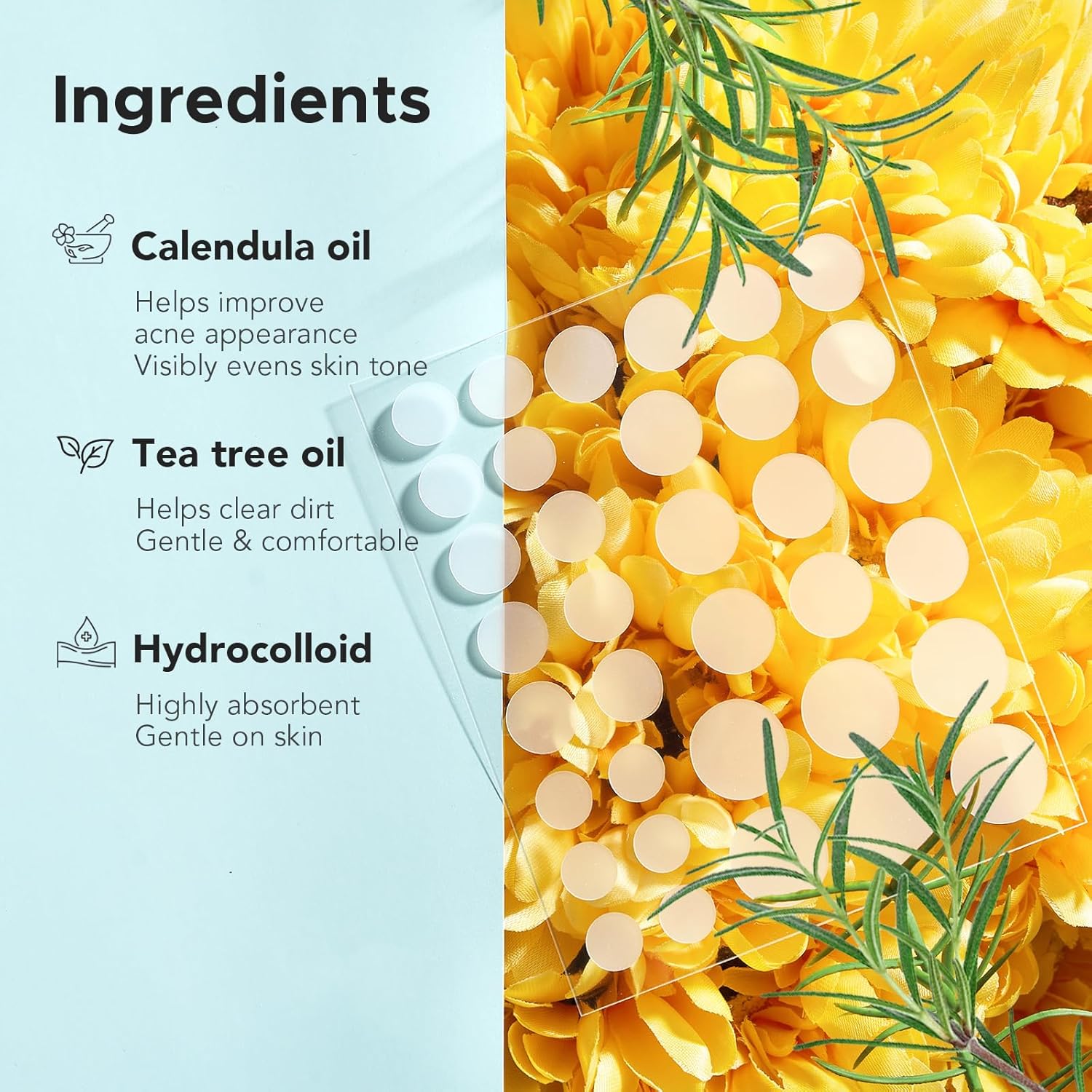 【Pure Elements】Pimples patches for face including tea tree oil & calendula oil, non-stimulating on all skin-types, protected and more practical