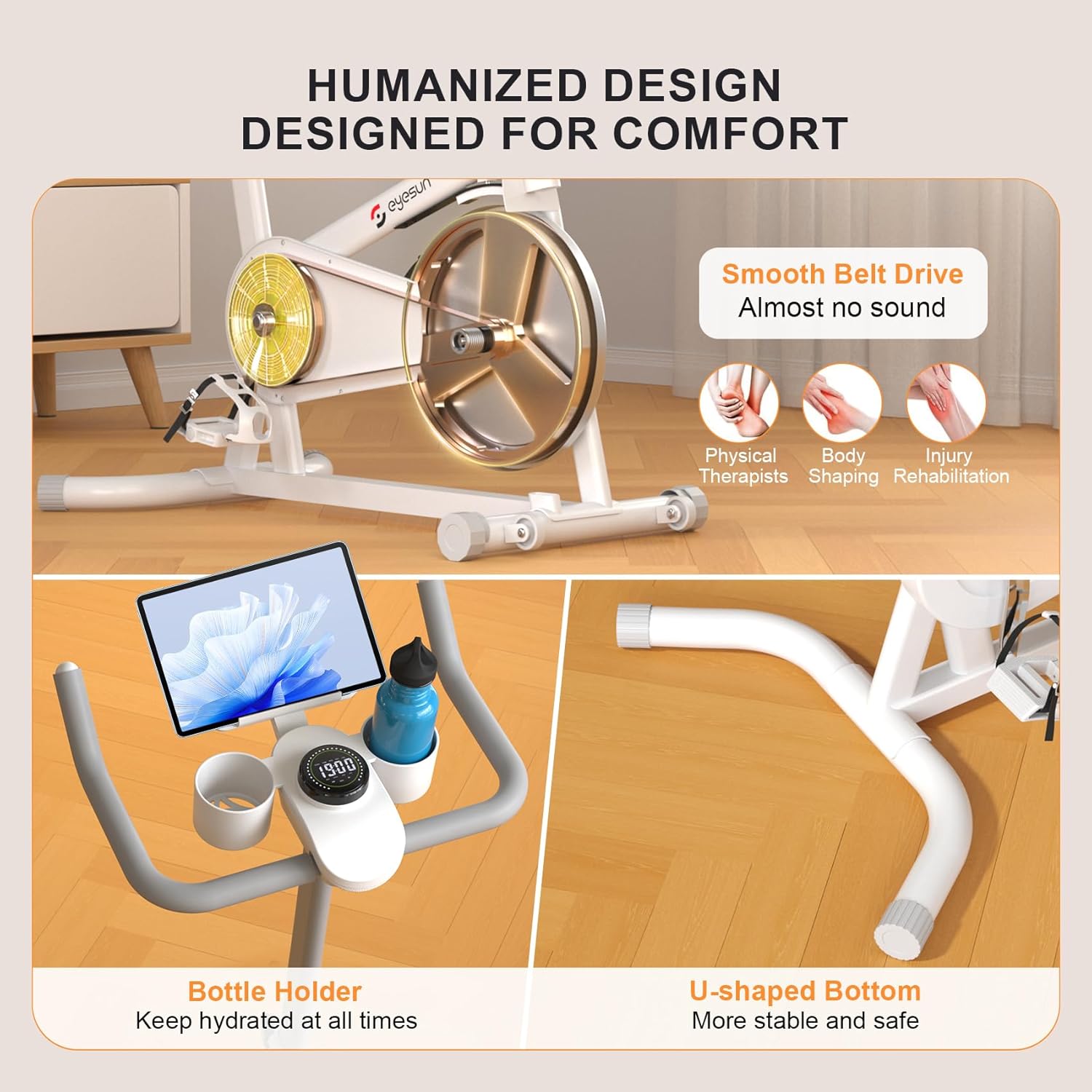 Protected & Handy to Use: Constructed for stability and security even throughout intense exercises, the EYESUN train bikes for house helps as much as 330 lbs. The resistance bar permits you to cease the flywheel immediately for added security, whereas the handy adjustable knob lets you customise resistance ranges to fit your coaching targets. Considerate options like a monitor holder to your pill or telephone, a water bottle holder, and built-in transport wheels make your exercise expertise easy and hassle-free.