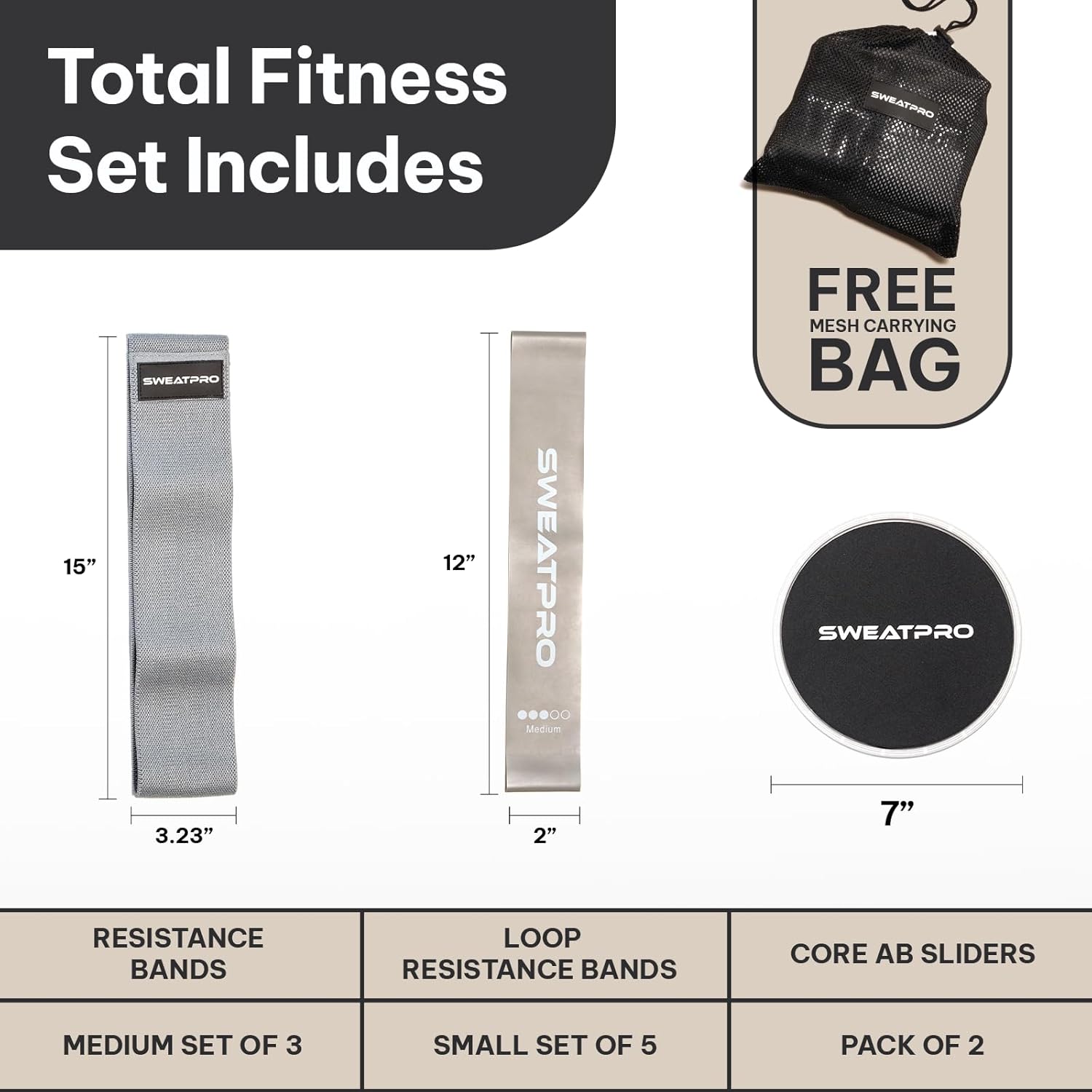 SweatPro Train & Firming Package. Resistance Bands, Booty Bands, Core Sliders Set for Males and Ladies, at House or fitness center