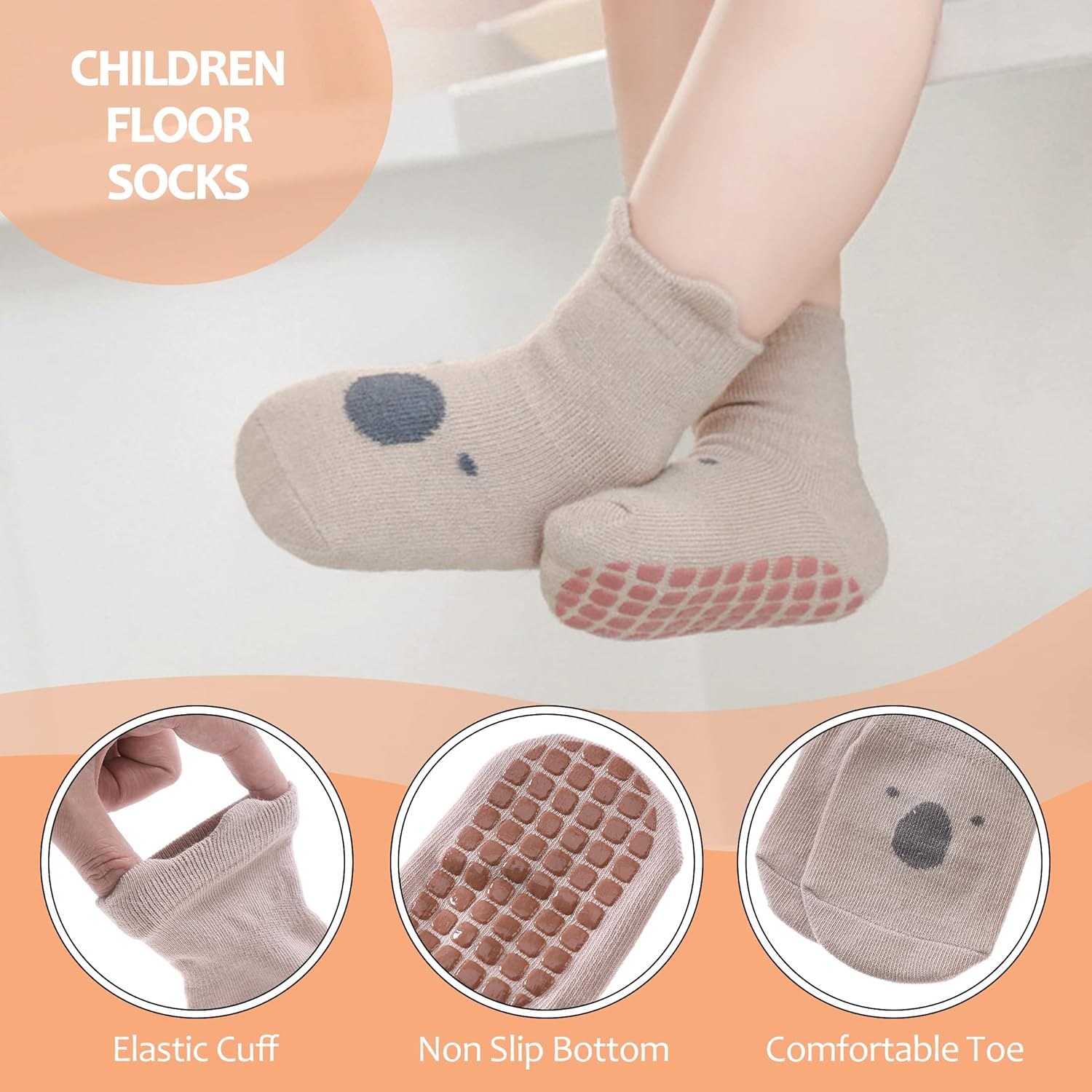 Clients discover these socks have good grip with good non-slip traction on the underside, and admire their high quality, with one noting they preserve their integrity after washing. They match nicely, with one buyer mentioning they’re comfy underneath braces, and are notably appropriate for brand spanking new walkers. Clients like the lovable design, with one highlighting the animal faces on the tops, and discover them thick sufficient for heat and really delicate.