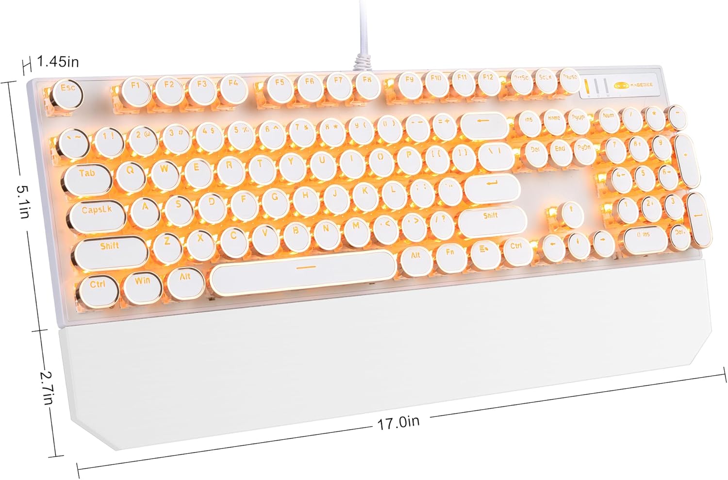 Prospects love the keyboard’s retro look and recognize its crisp, typewriter-like clicking sound. The lighting options obtain constructive suggestions for his or her number of choices, and clients like the colours, with one noting the braided wire matches the pink theme. Nevertheless, the keyboard’s sturdiness is regarding, with a number of clients reporting that keys pop off continuously and the keyboard stops working correctly.