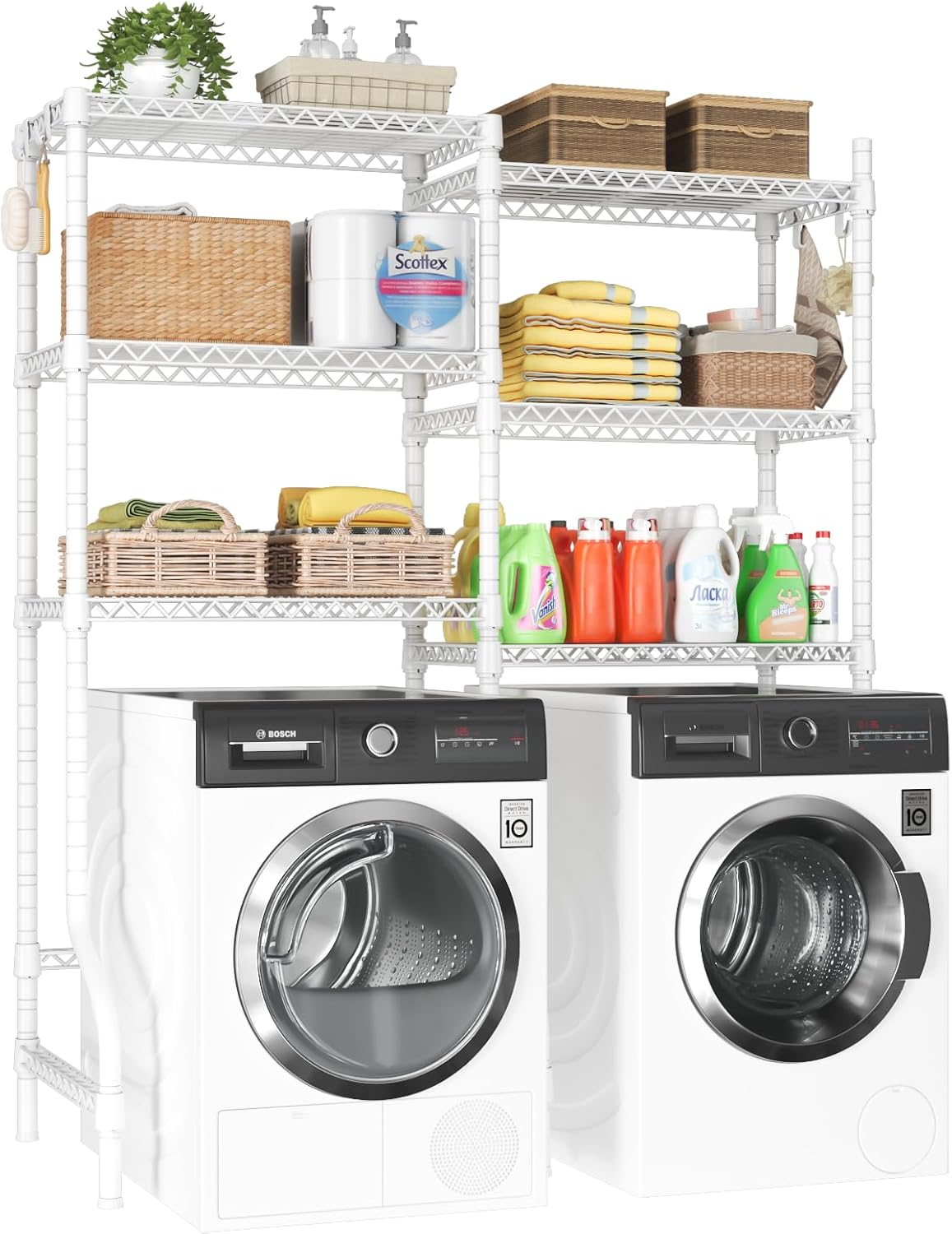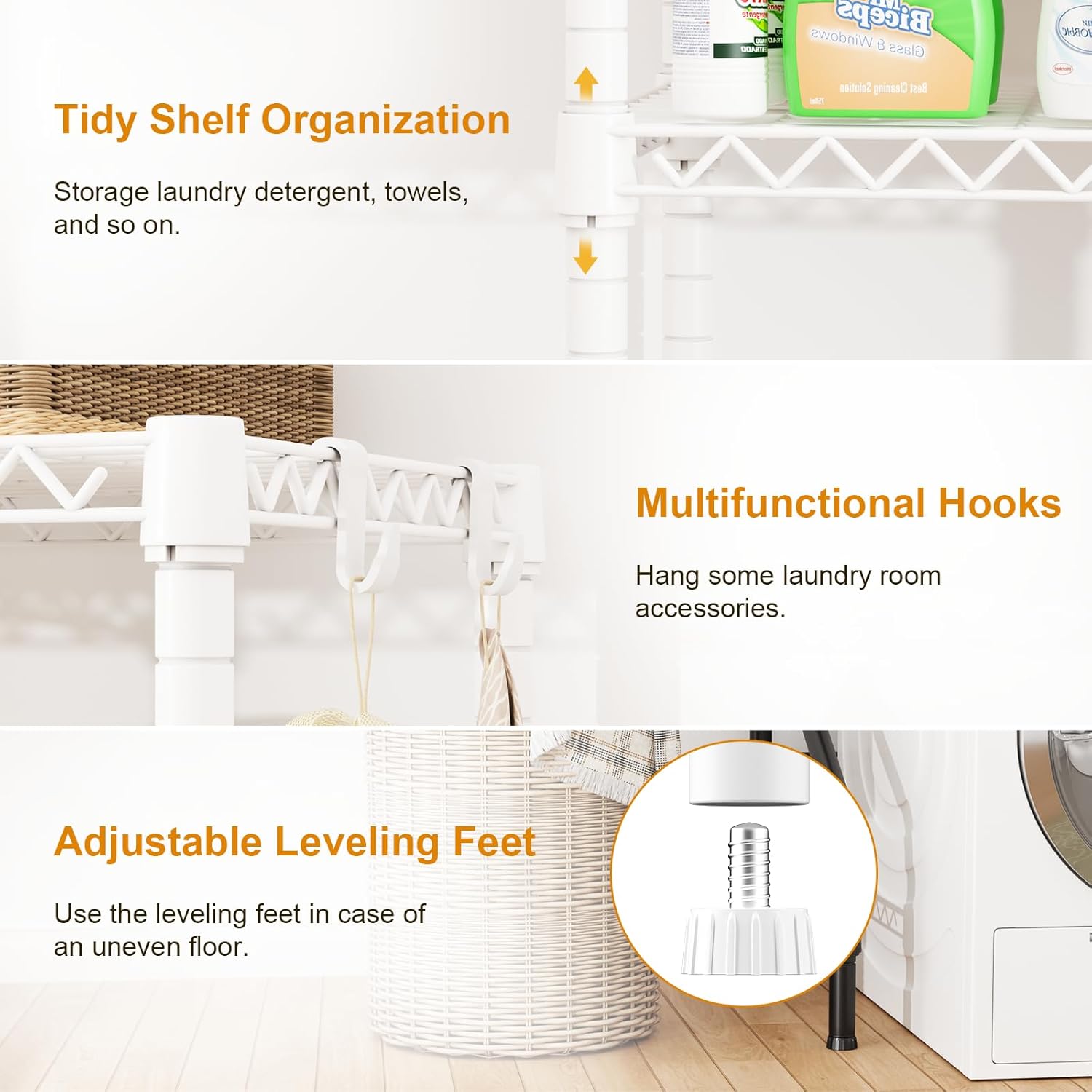 Steady and Lengthy-lasting: The over-washer and dryer storage rack options anti-rust powder coating for humidity-prone laundry rooms or garages