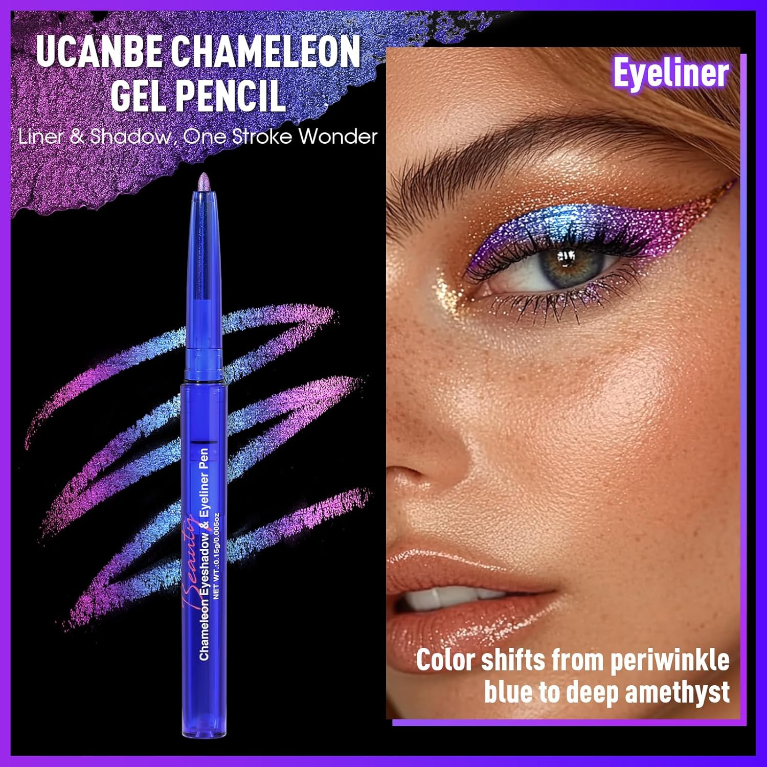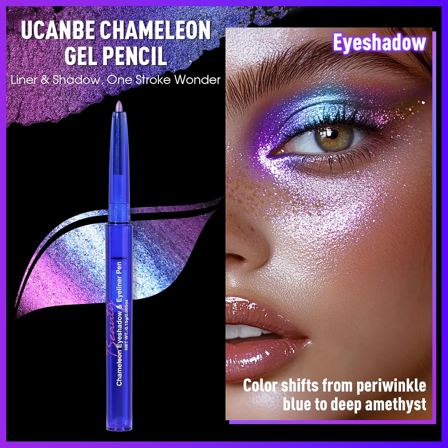 【2 IN 1 Gel Pencil with Chameleon Impact】Benefit from the versatility of this gel pencil that serves as each an eyeshadow and eyeliner, from outlined traces to a delicate, blended end. That includes multichrome shifting colours, it creates a mesmerizing chameleon impact with metallic glitter, including dimension and sparkle to your eye make-up.