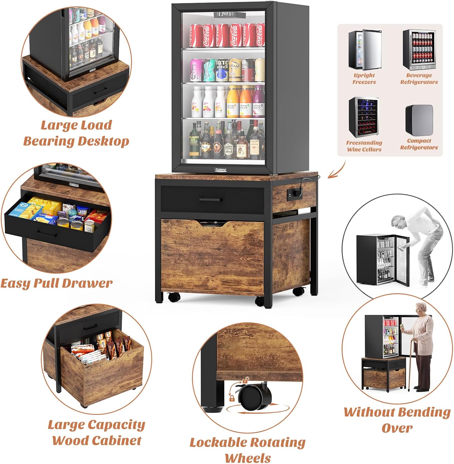 Unikito Mini Fridge Stand with Drawer Storage and Energy Outlet