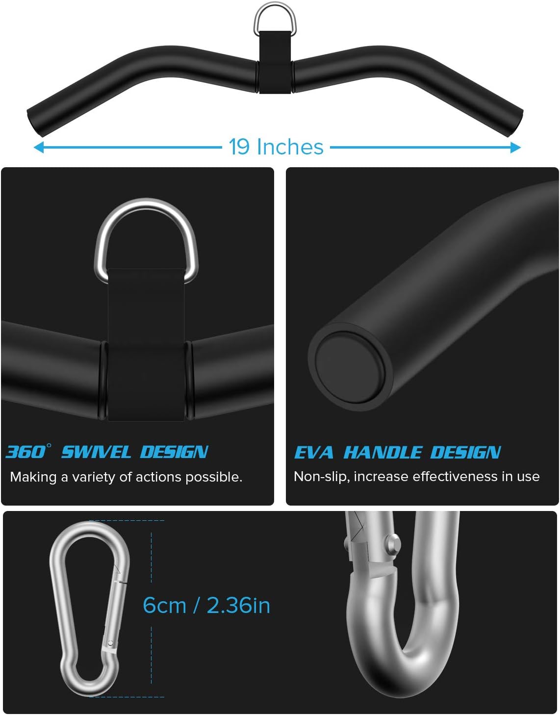 Multi-purpose W-Formed Curl Bar Cable Attachment: The lat bar attachment could be connected to any of you residence gymnasium pulley cable system, cable machine system, smith machine, rowing machine, and many others. By altering the connection of the pull-bar buckle which is 360° rotatable, you may get two train strategies : pull-down and lift-up. Splendid for performing pulldown, tricep press down, upright rows,straight bar curls, seated rows